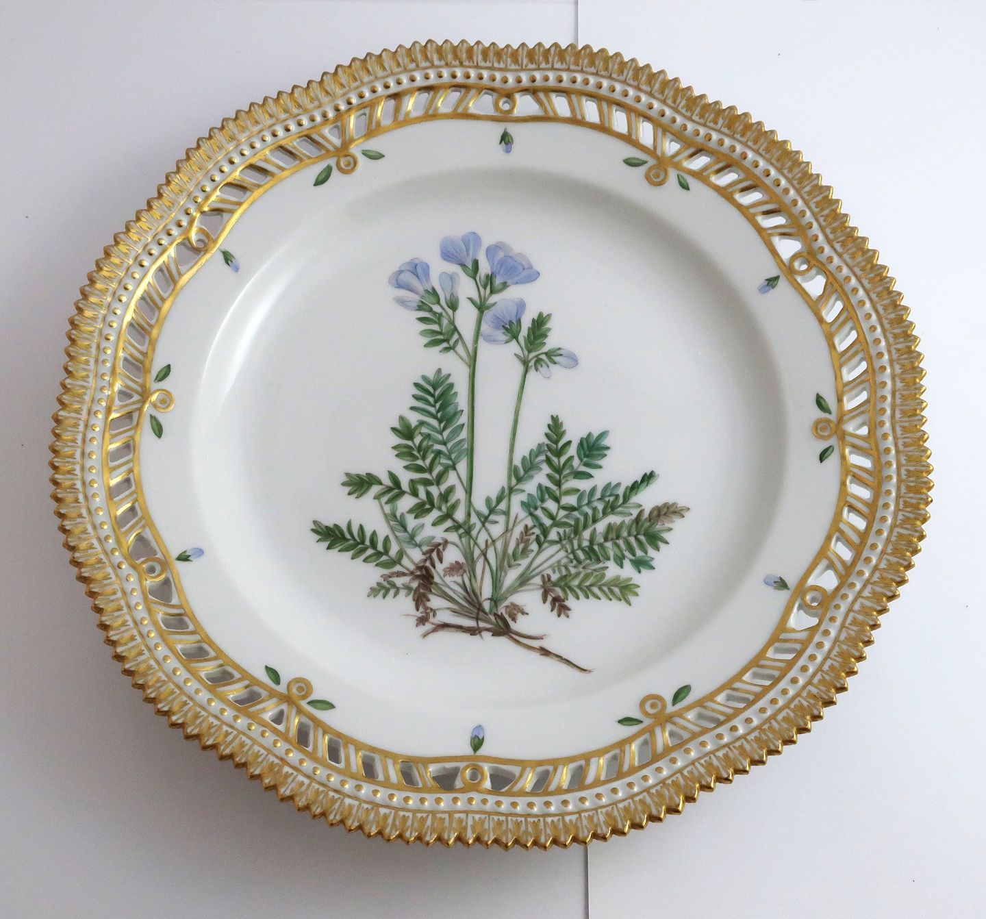 Royal Copenhagen. Flora Danica Teller m. durchbrochener Kante. Durchmesser 25 cm. Modell 3553. (1 Wahl). Polemonium humile Willd Händler