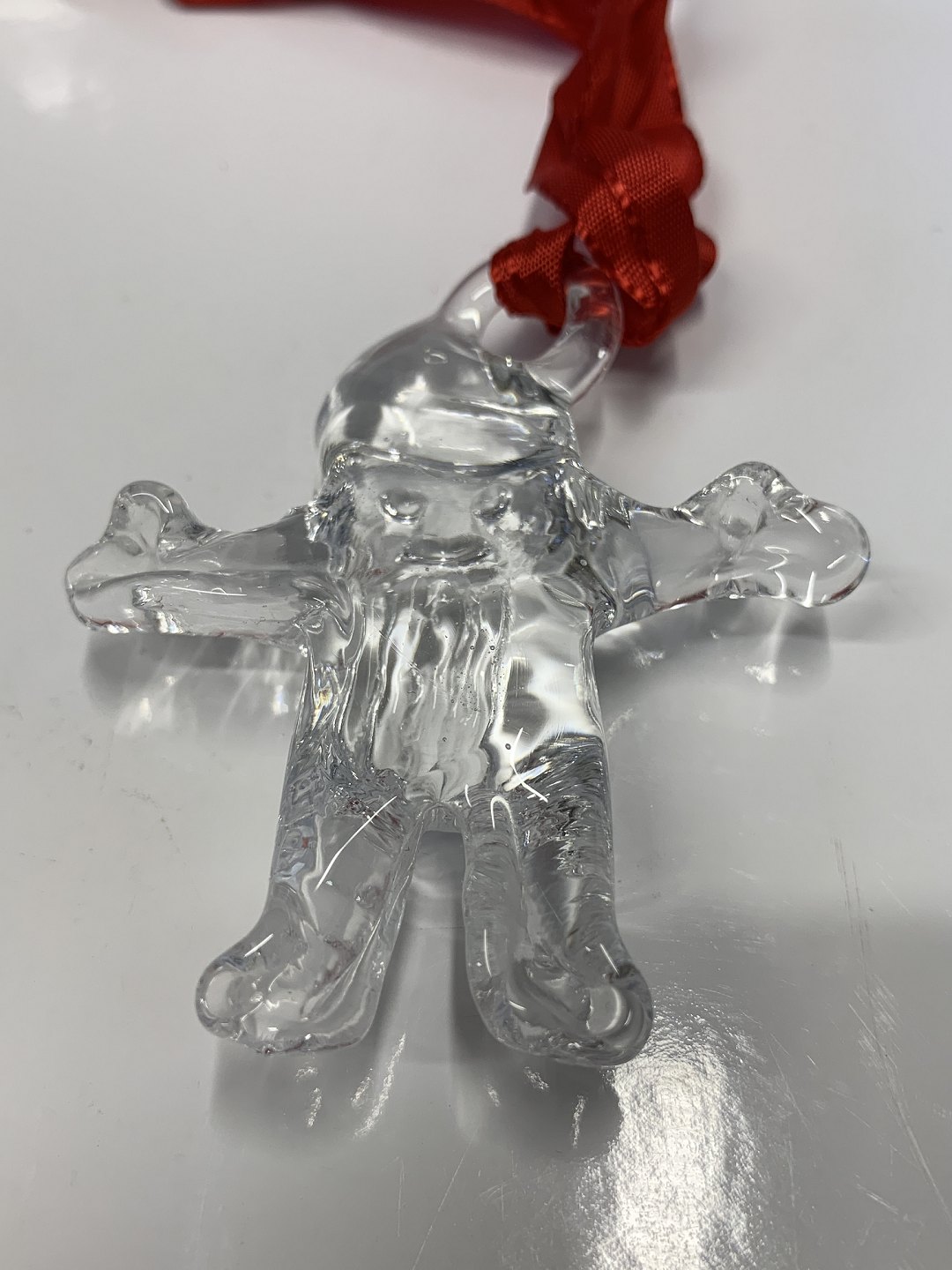 Super flot juleophæng i glas, designet af Bertil Vallien for Kosta Boda. Hæng den søde julemand på juletræet, en gren, i vinduet eller ned fra loftet. Den fremstår i flot og hel stand.Højde: 7 cm.
