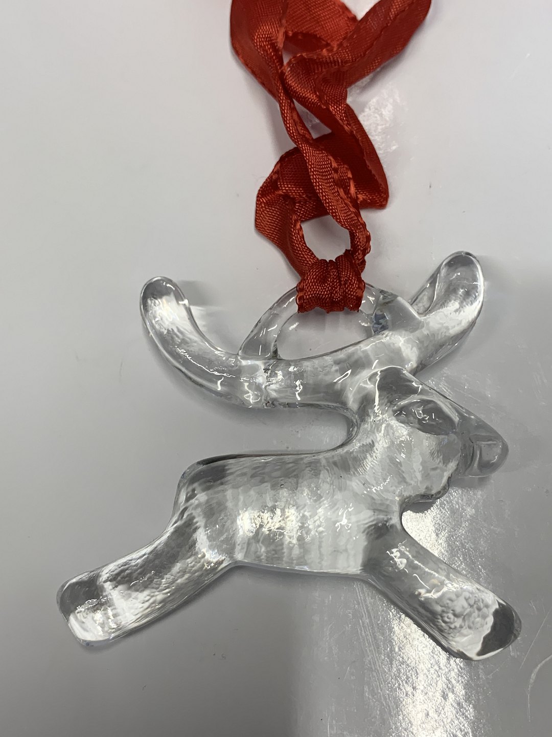 Super flot juleophæng i glas, designet af Bertil Vallien for Kosta Boda. Hæng den søde rensdyr på juletræet, en gren, i vinduet eller ned fra loftet. Den fremstår i flot og hel stand.Højde: 5 cm.