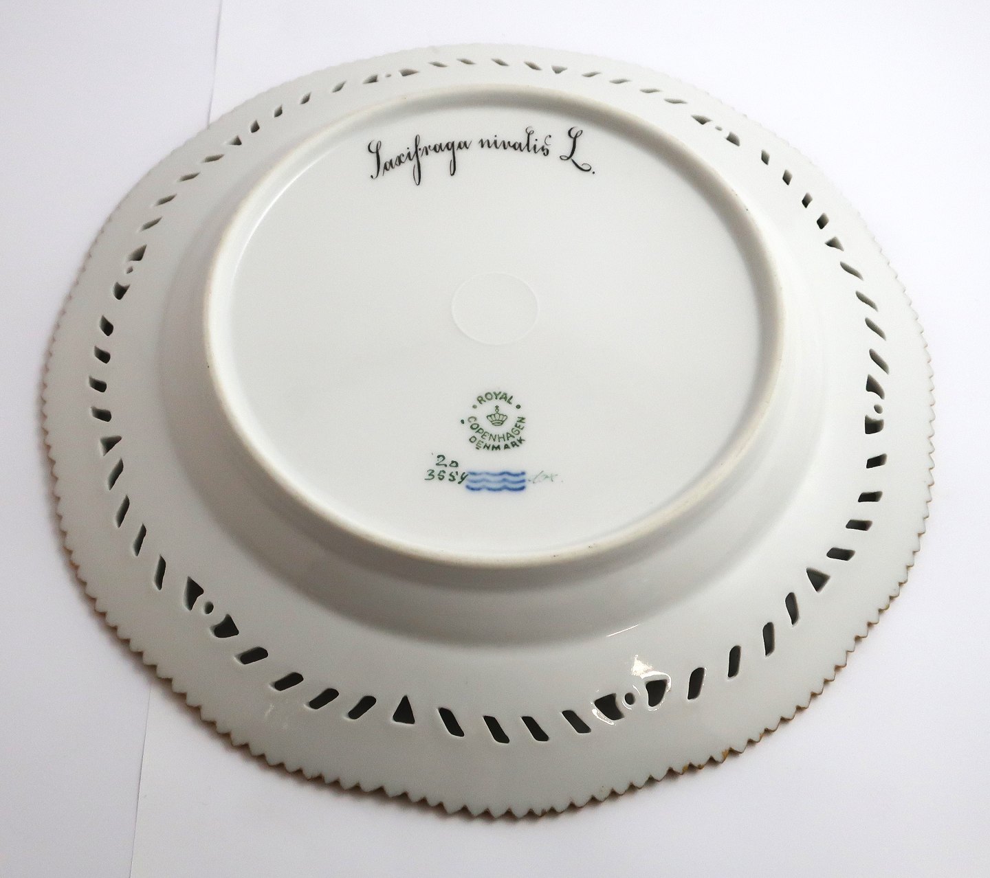 Royal Copenhagen Flora Danica. Mittagessen Platte mit durchbrochener kante. Entwurf # 3554. Durchmesser 23 cm. (1 Wahl). Saxifraga nivalis L Händler