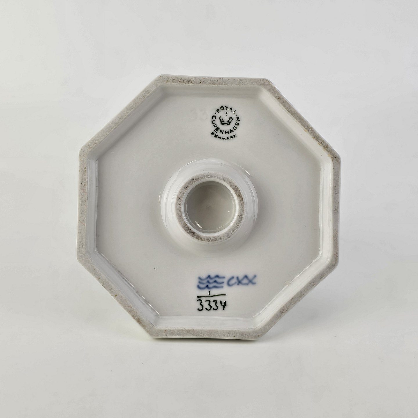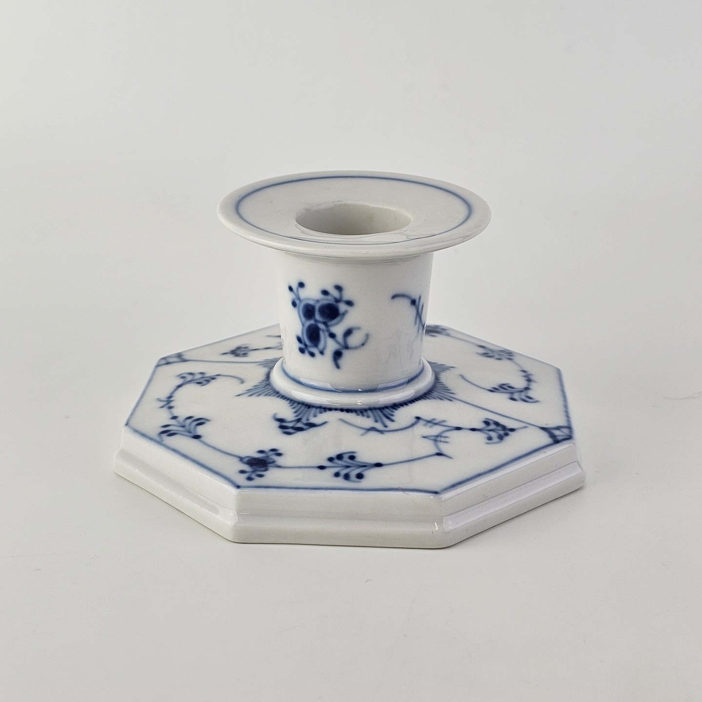 Lysestage i kongeligt porcelæn fra stellet Musselmalet Glat Nr. 1/3334