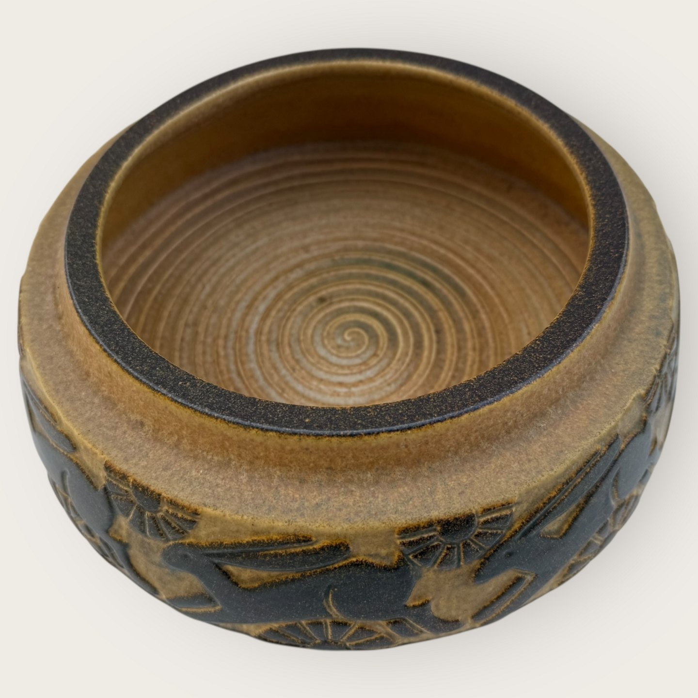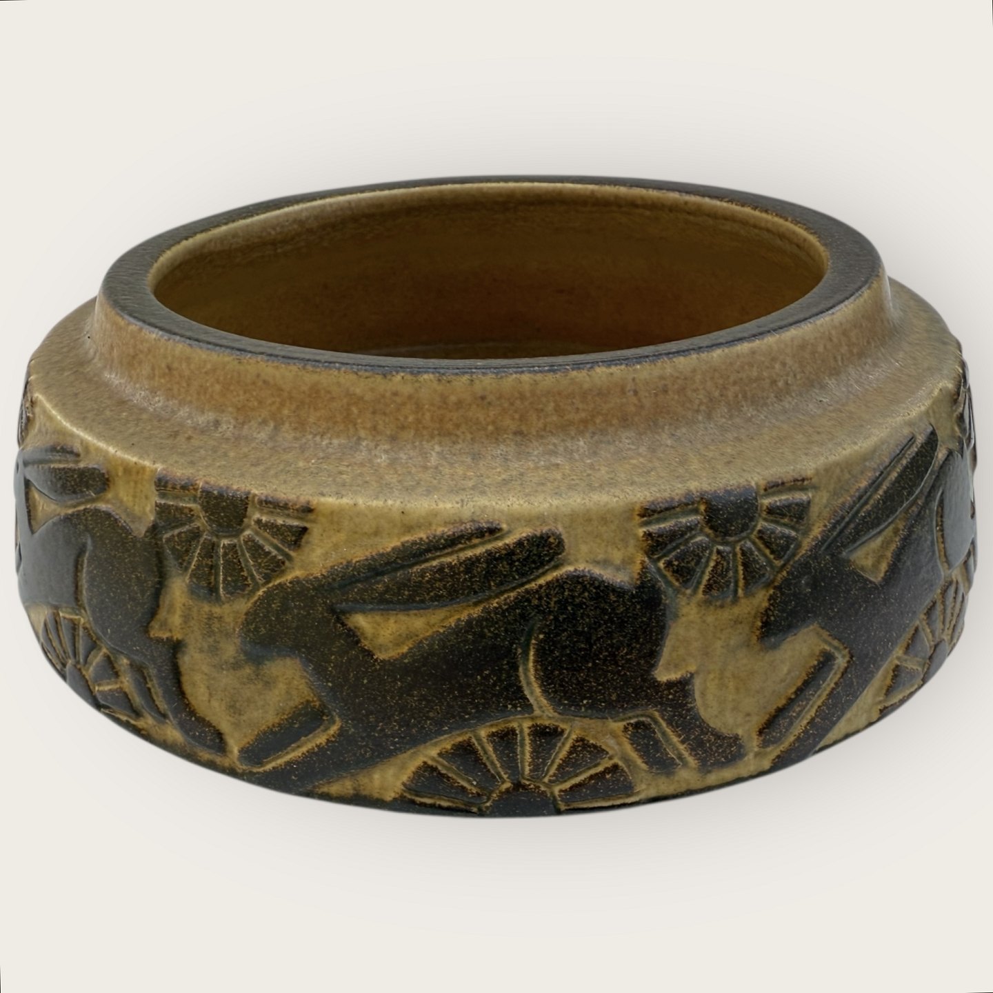 Bornholmer Keramik, Michael Andersen, Große Schale mit springenden Hasen, Durchmesser 23,5 cm, Höhe 8 cm, Nr. L429 *Guter Zustand*Lager: 1