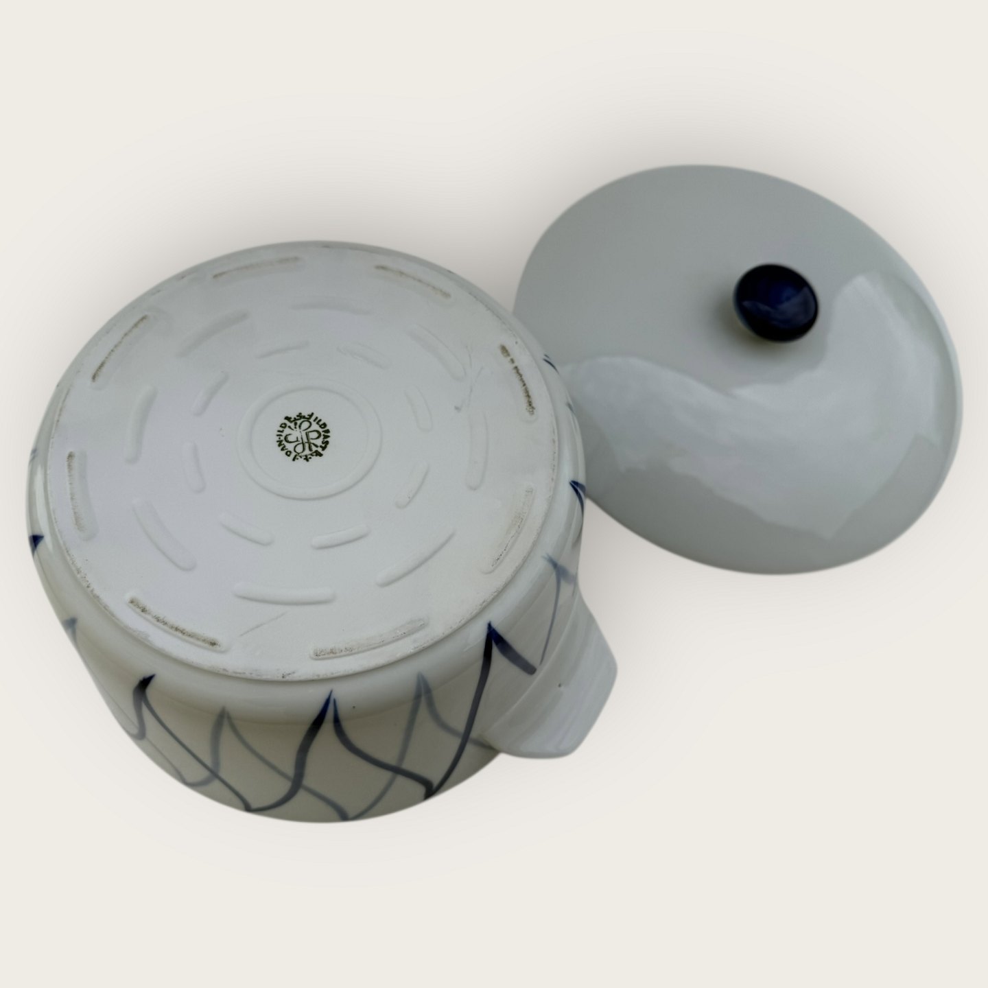 Lyngby, Danild 40, Blaue Flamme, Topf mit Deckel und Henkel, Durchmesser 20,5 cm, 25 cm breit mit Henkel, 10,5 cm hoch, 1. Wahl, Design Axel Brüel & Egon Mortensen *Guter Zustand*Lager: 1