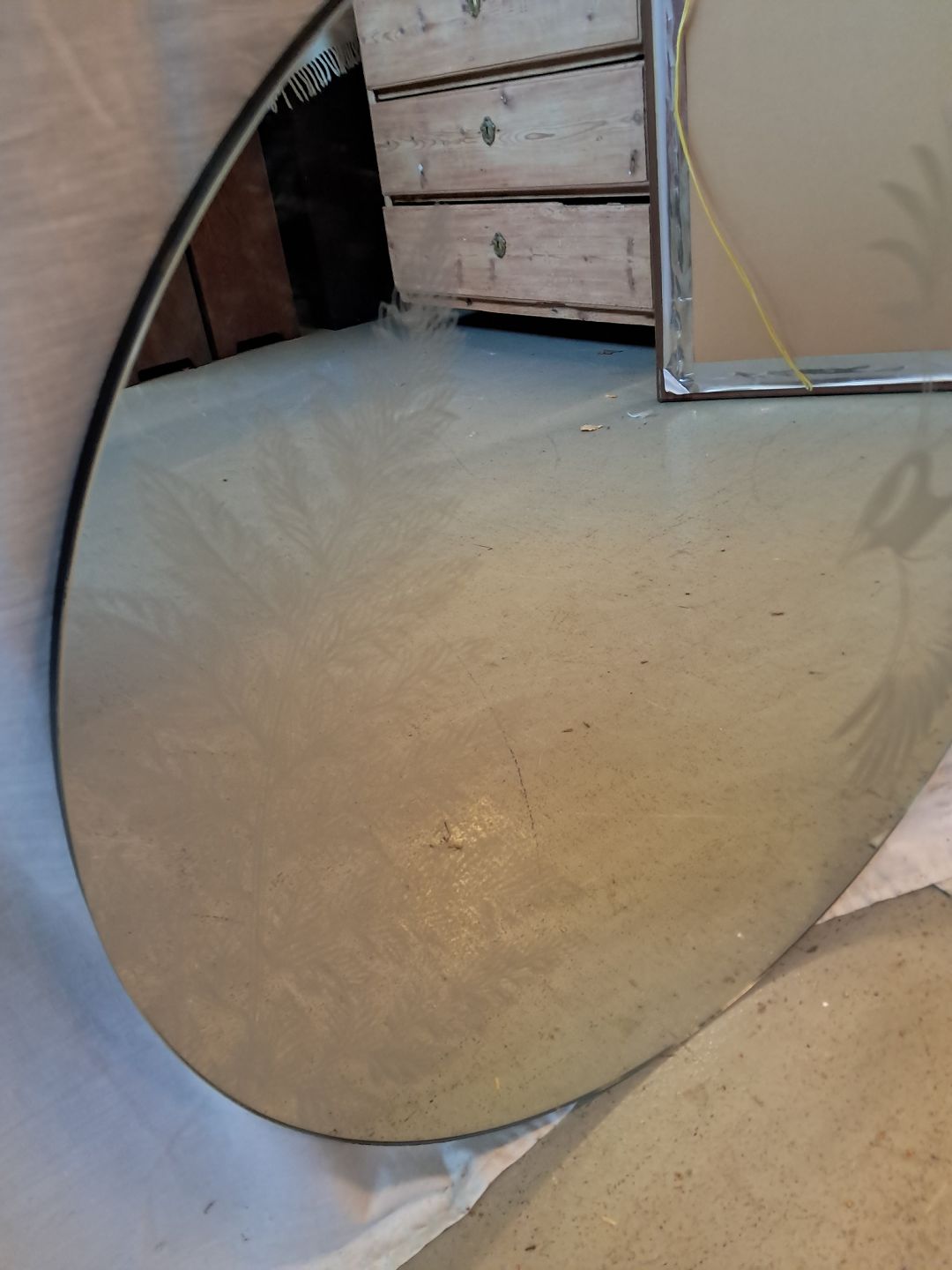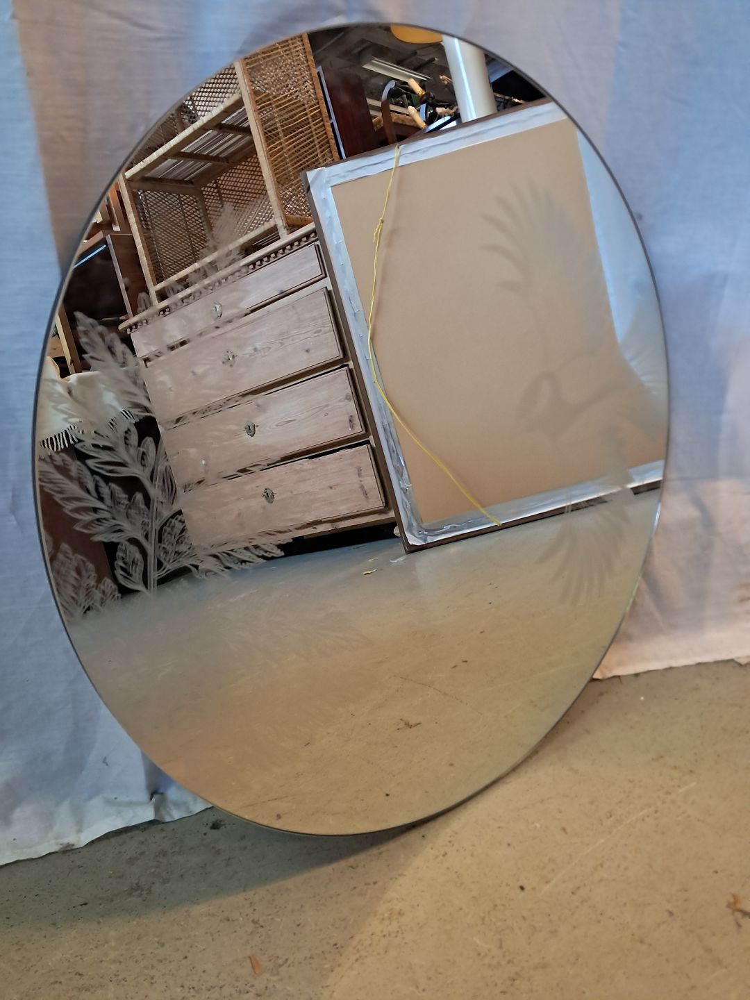 Spejl med fugl og gren, fra 2000erne.Diameter 60cm