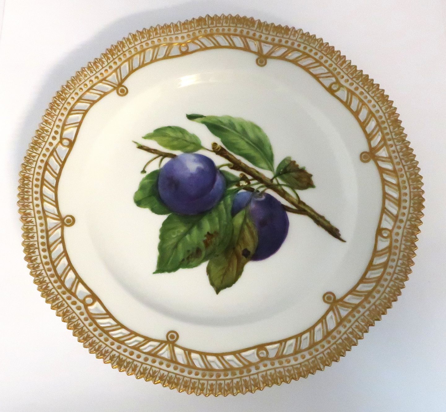 Royal Copenhagen Flora Danica, Obstteller. Mittagessen Platte mit durchbrochener kante. Entwurf # 429/3554. Durchmesser 23 cm. (1 Wahl). Händler