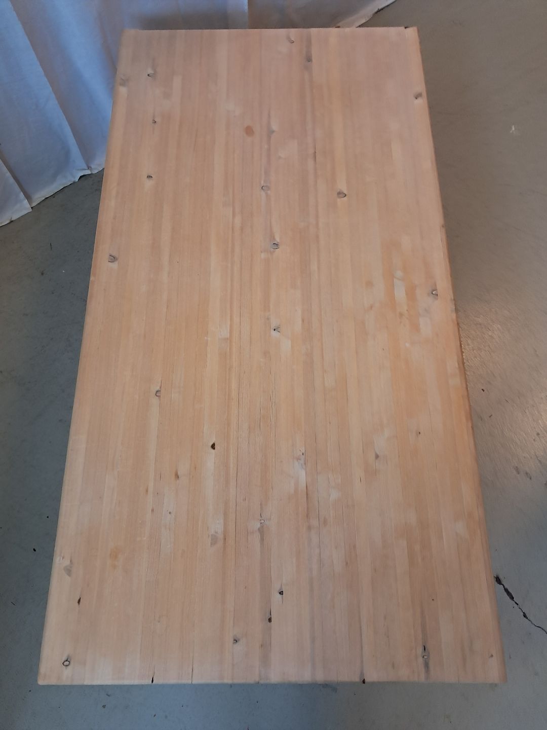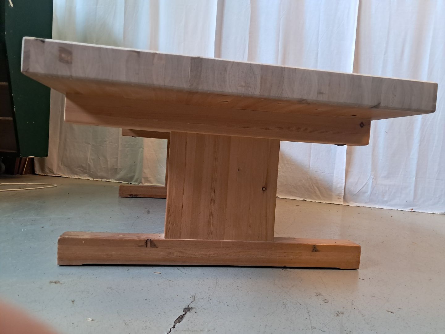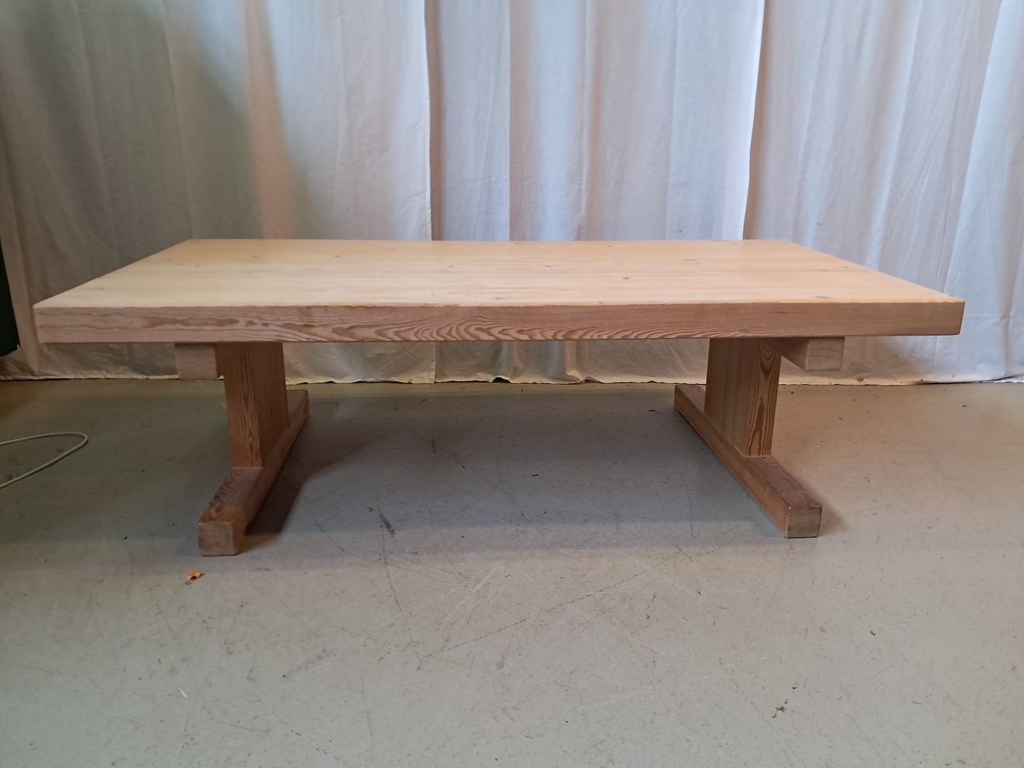 Sofabord i massivt fyrretræ, fra 1980erne.Det har brugsspor.