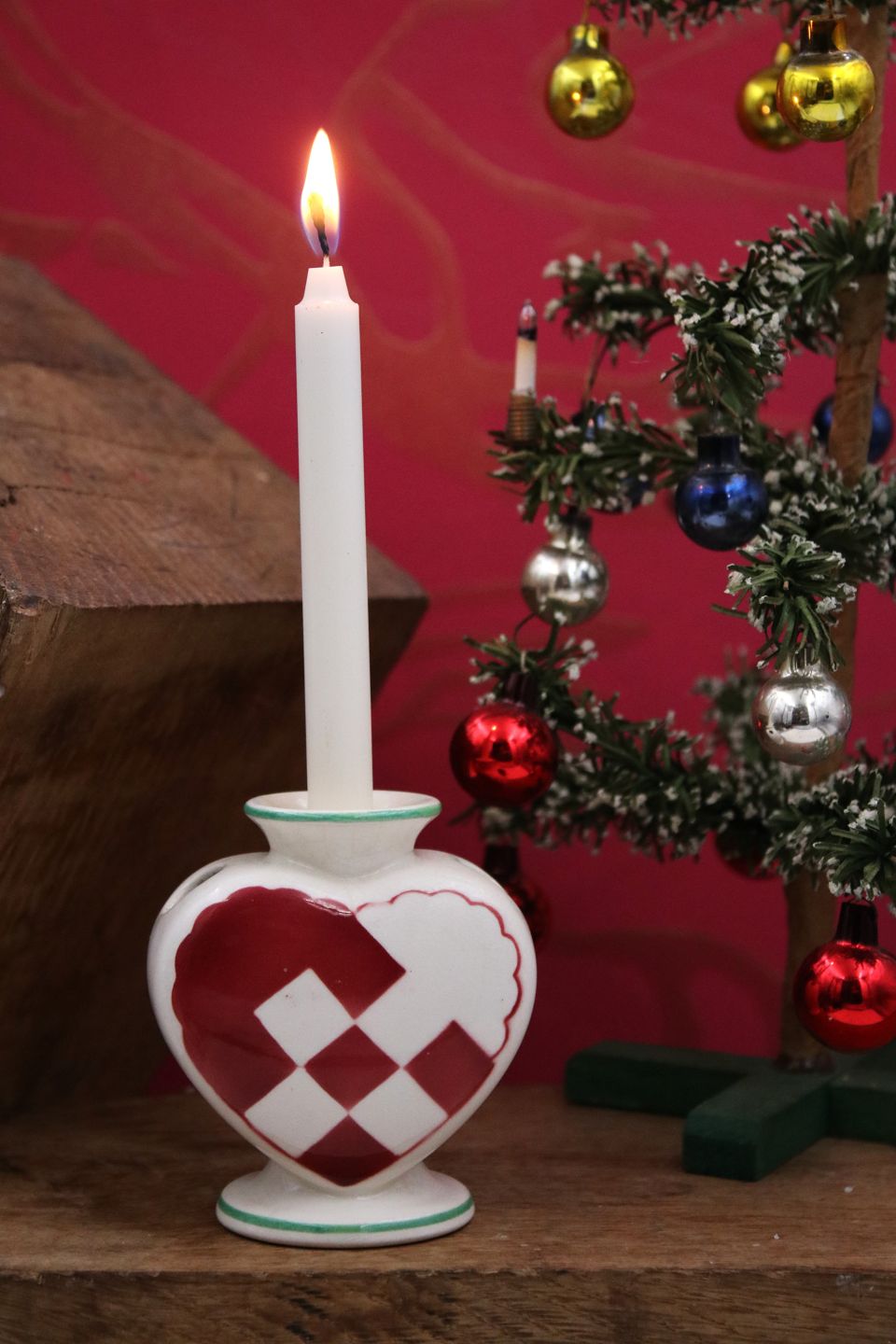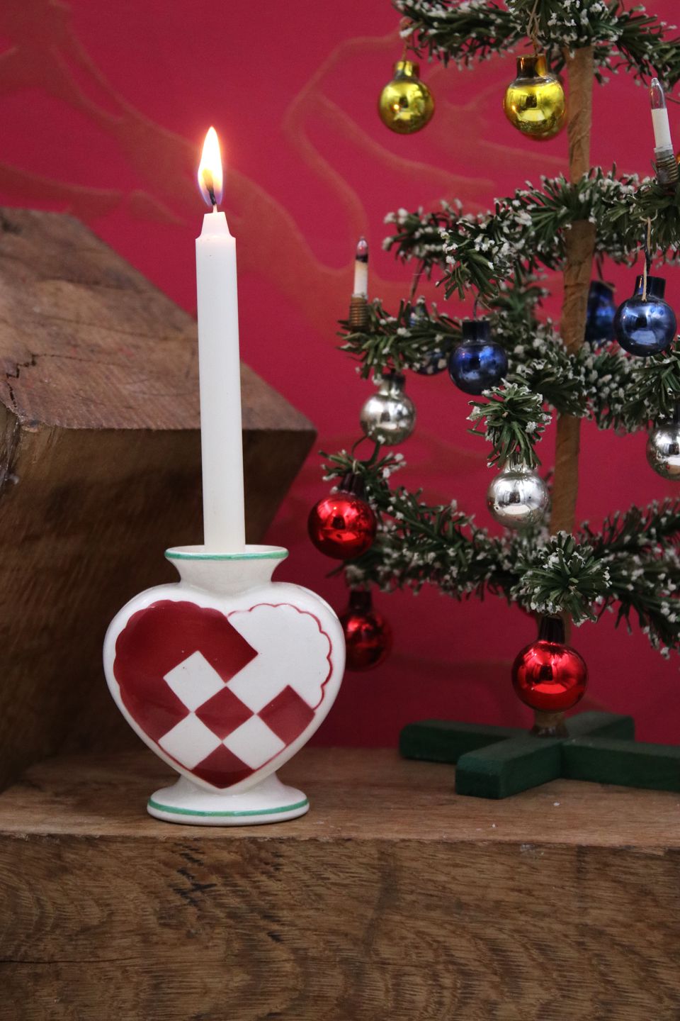 Gammelt rødt Aluminia fajance julehjerte til lille stearinlys.H:7,5cm. Er i helt og i fin stand.