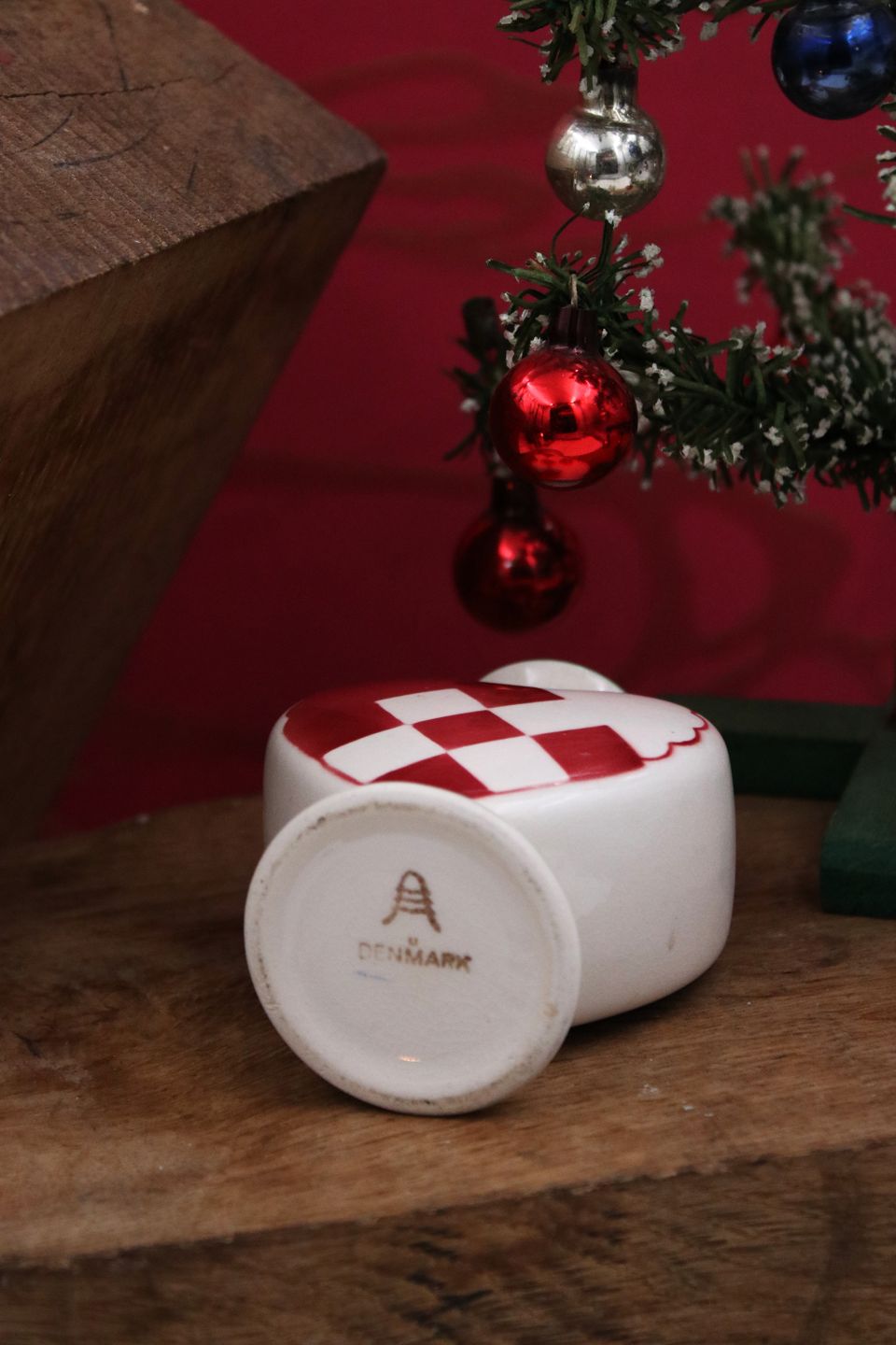 Gammelt rødt Aluminia fajance julehjerte til lille stearinlys...