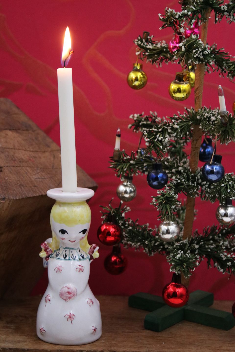 Nymølle jule engel med gult hår i fajance med plads til lille grangren eller stearinlys i toppen...