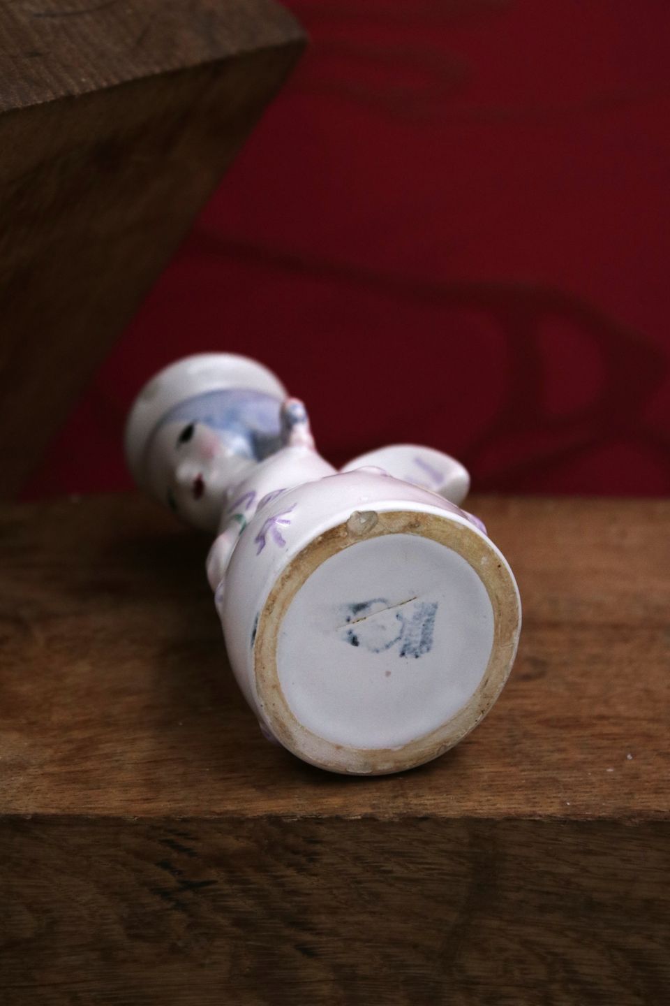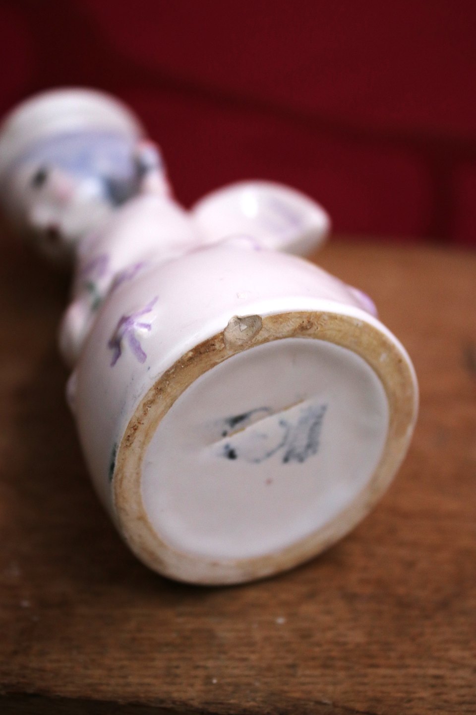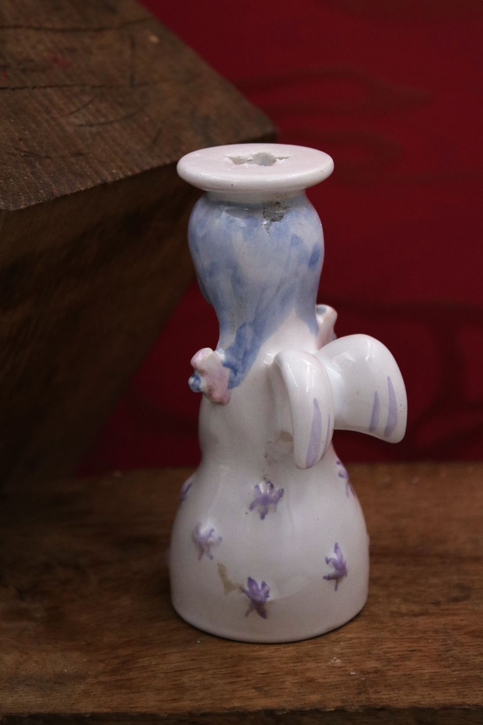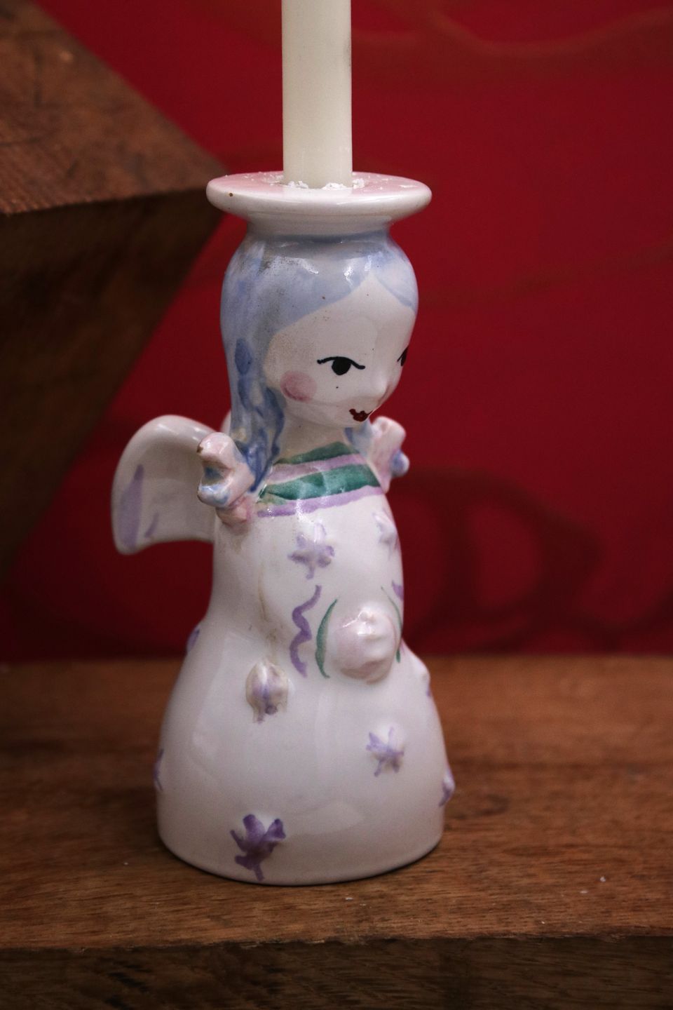 Nymølle jule engel med blåt hår i fajance med plads til lille grangren eller stearinlys i toppen...