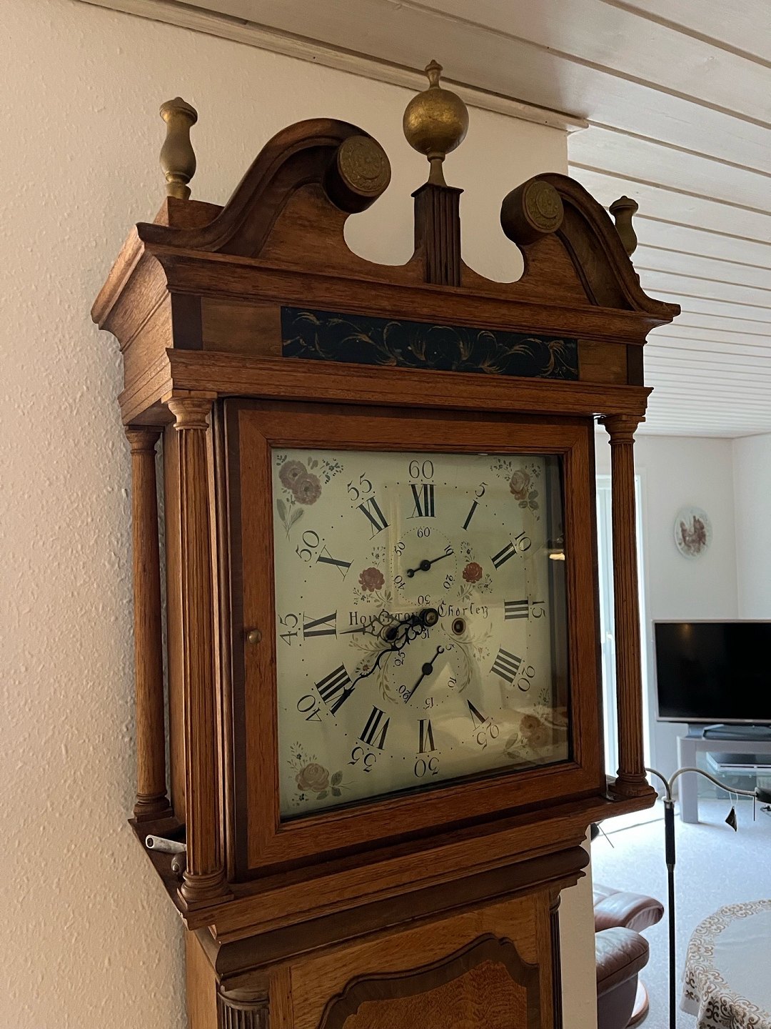 Standuhr mit Zifferblatt in römischen Ziffern. Die Uhr ist in hervorragendem Zustand. Verkauf an den Höchstbietenden. Machen Sie ein Angebot. Händler