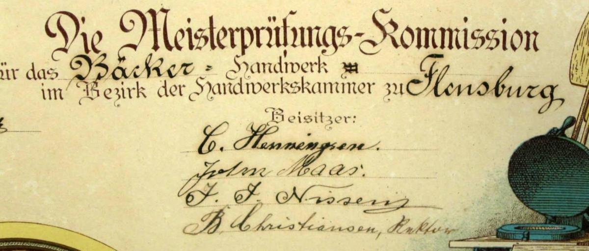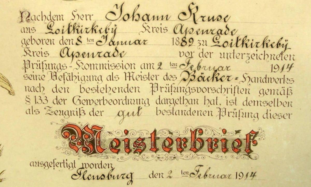 Bäckermeister Brief Løjt Kirkeby 1914. Bäckermeister Johan Kruse. Lithographie. 66 x 48 cm. In Mahagonirahmen.Bestellnummer: 6260