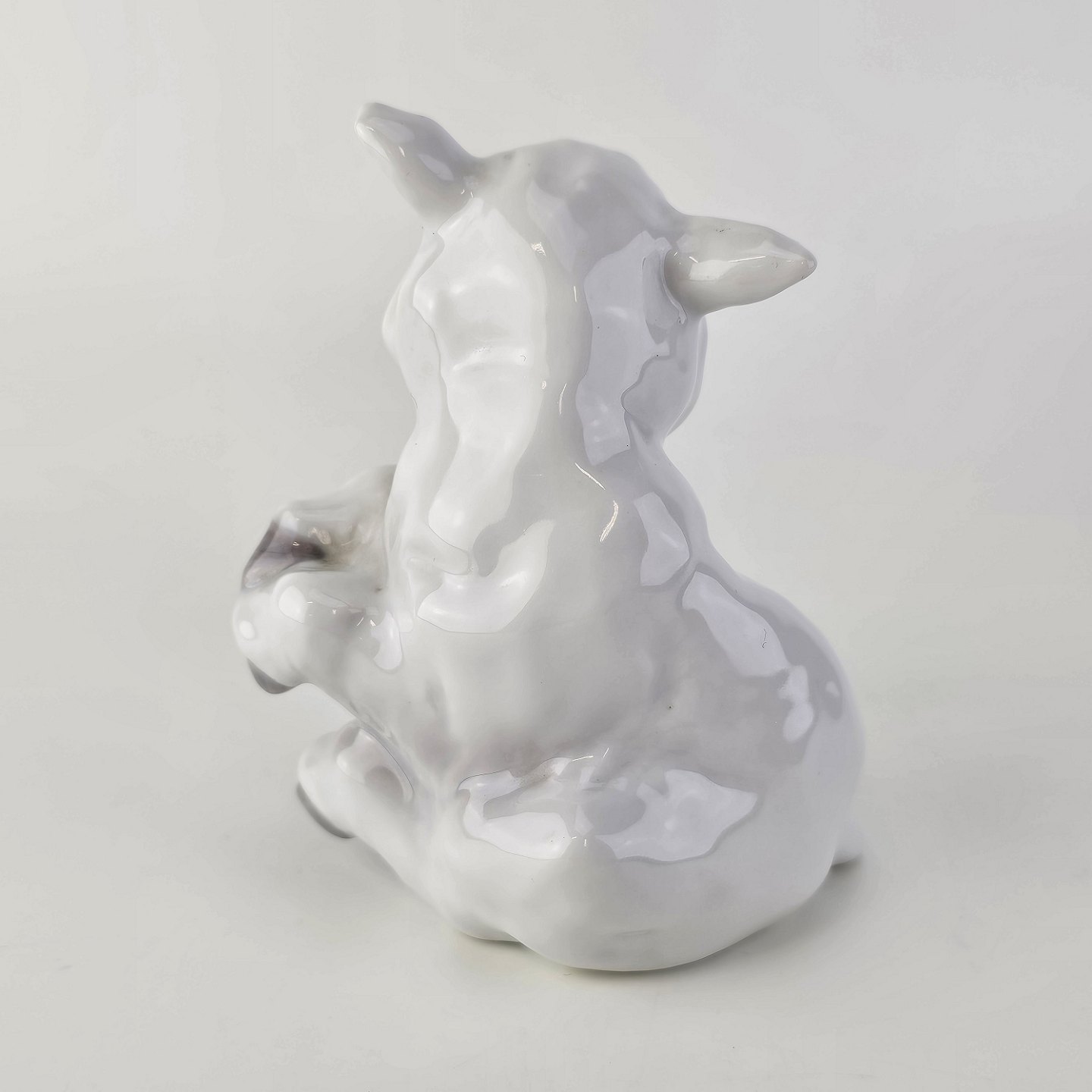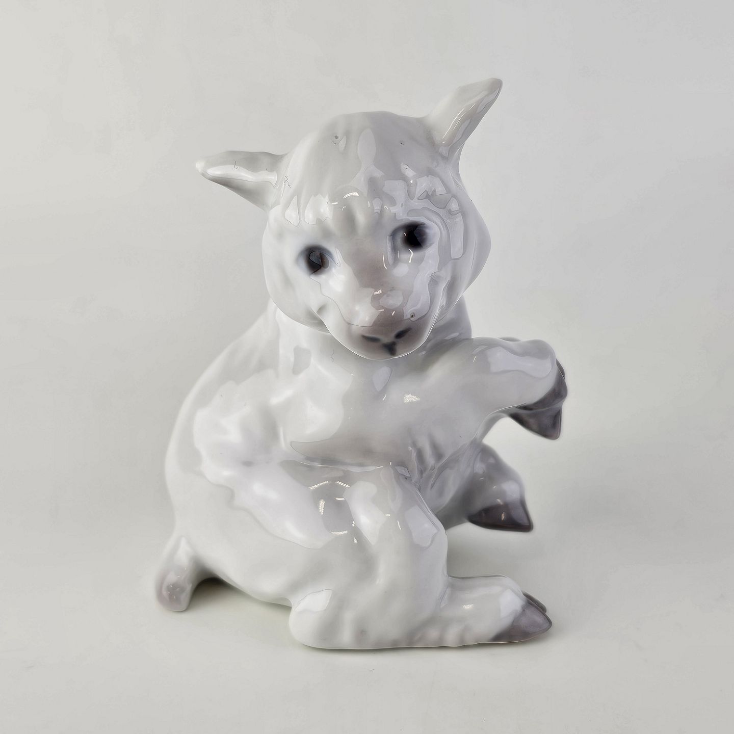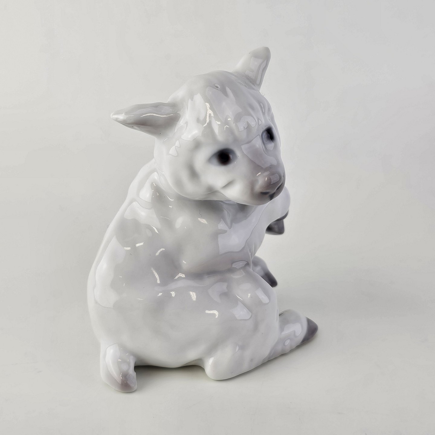 Figur i porcelæn med motiv af et siddende lamProducent Bing og Grøndahl