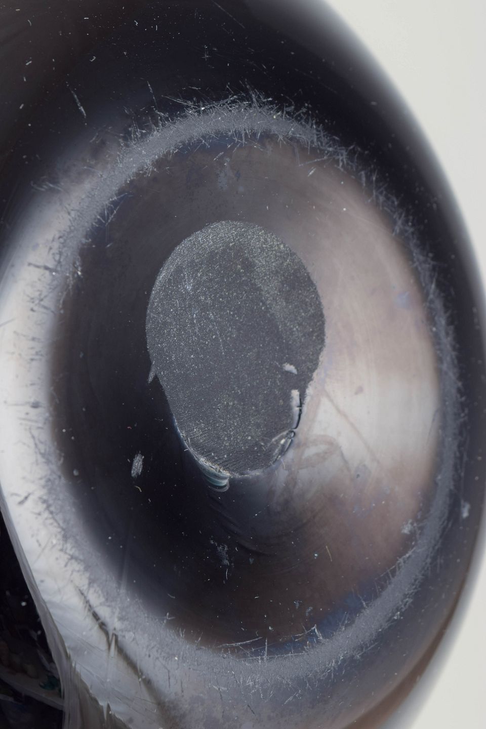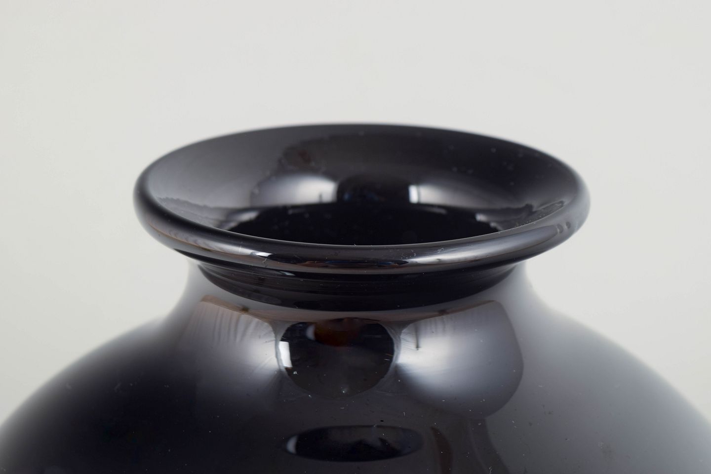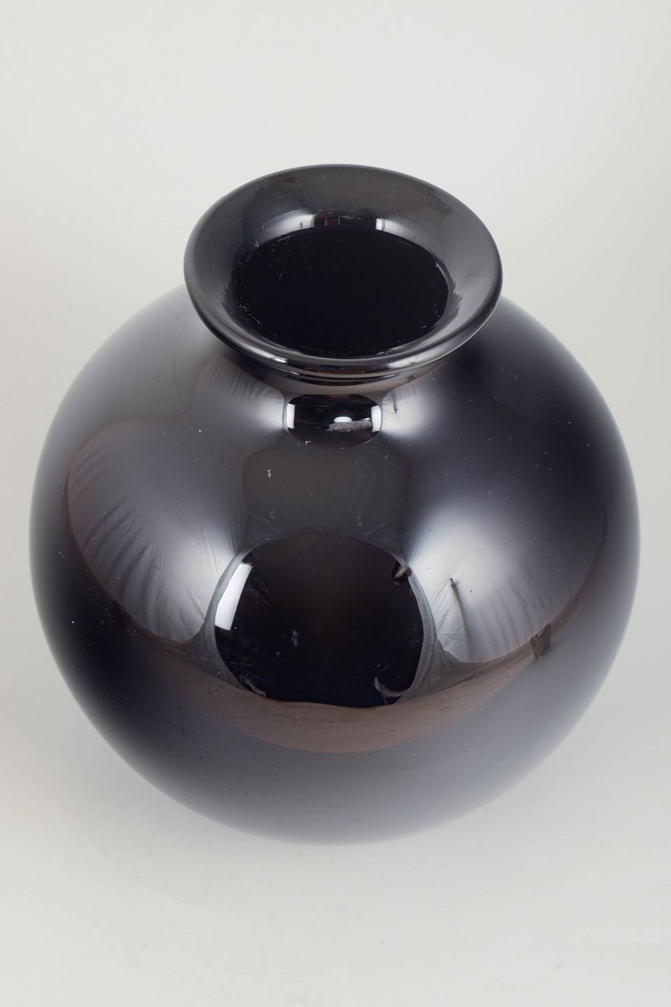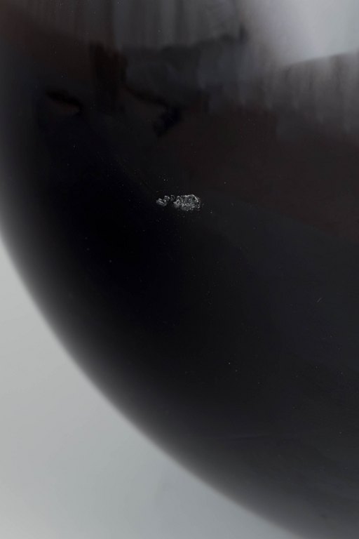 Mundblæst art-deco glasvase i dyb, næsten sort tone med rund korpus og let udadsvendt hals. Usigneret, som typisk for perioden og for flere af Notinis arbejder for Pukeberg.