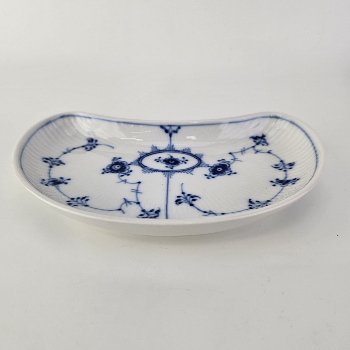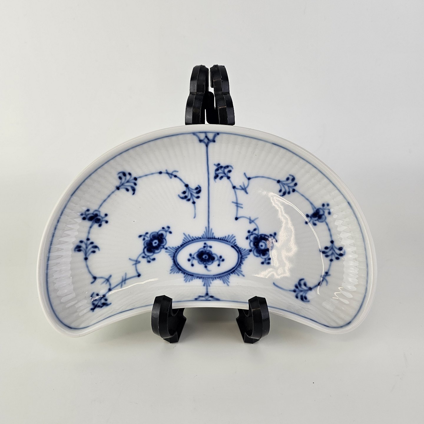 Halvmåneformet fad i kongeligt porcelæn fra stellet Musselmalet HalvblondeNr. 1/154