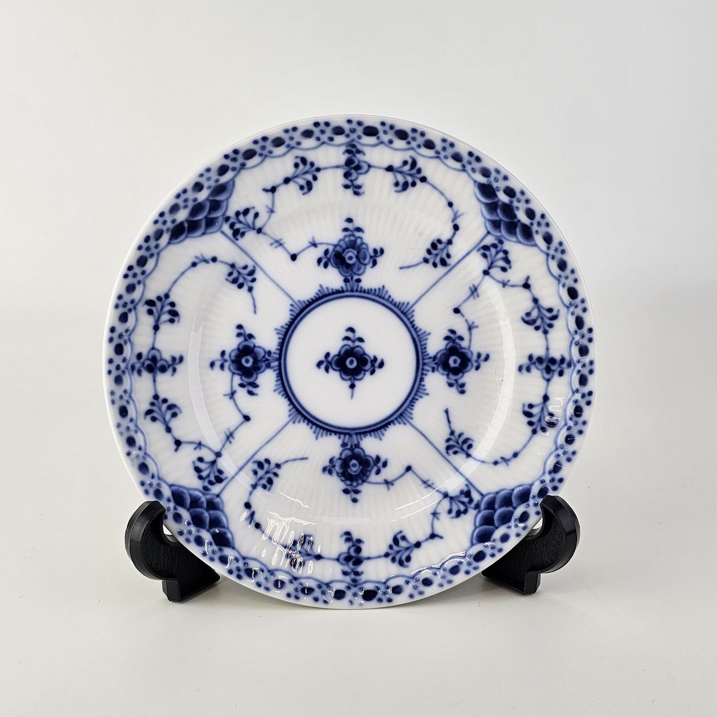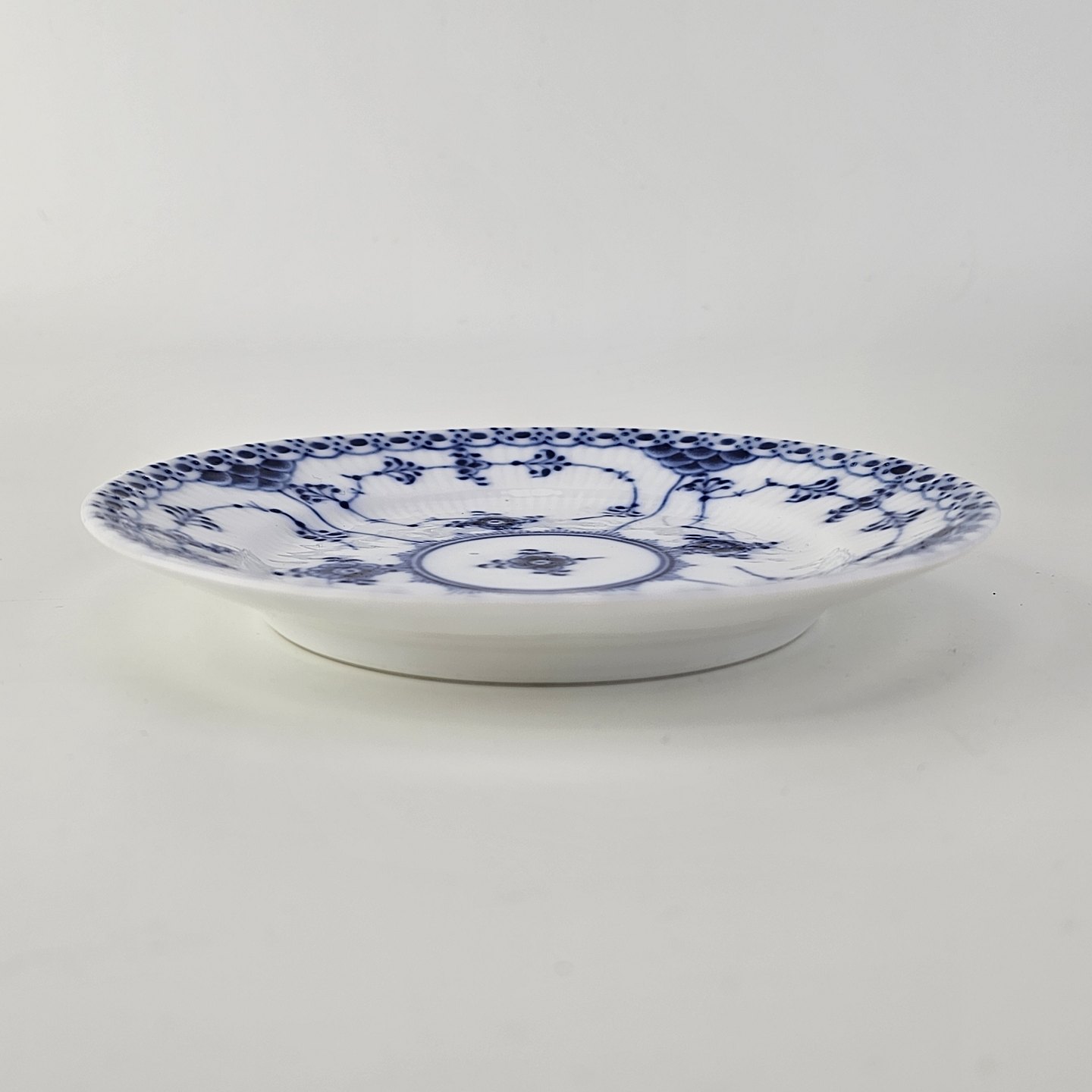 Flad kagetallerken i kongeligt porcelæn fra stellet Musselmalet HalvblondeNr. 1/653
