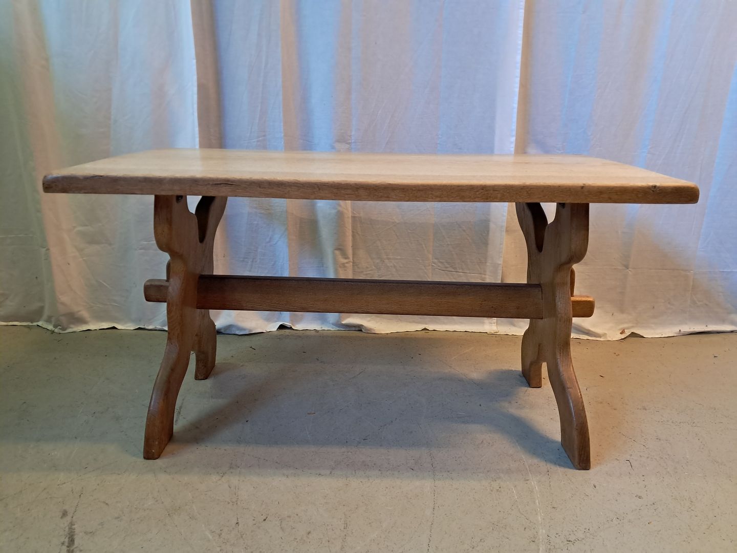 Sofabord i massivt egetræ, fra 1980erne.Det har brugsspor.