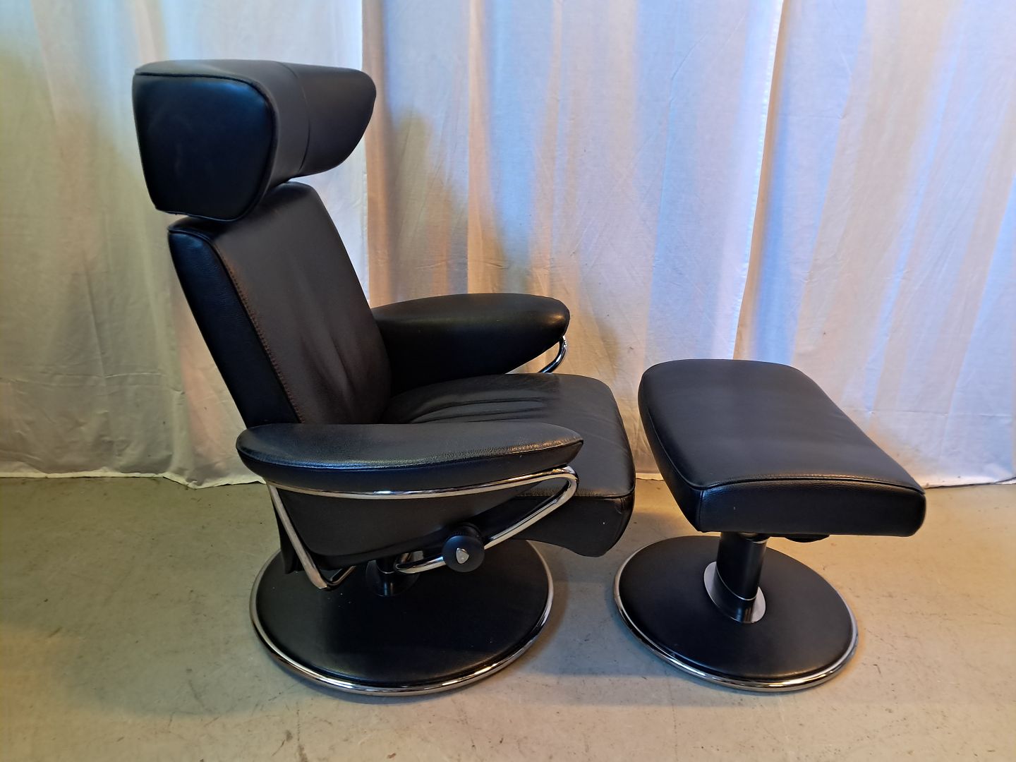 Stressless model Jazz læder lænestol med fodskammel, fra 2010erne.Den har brugsspor.