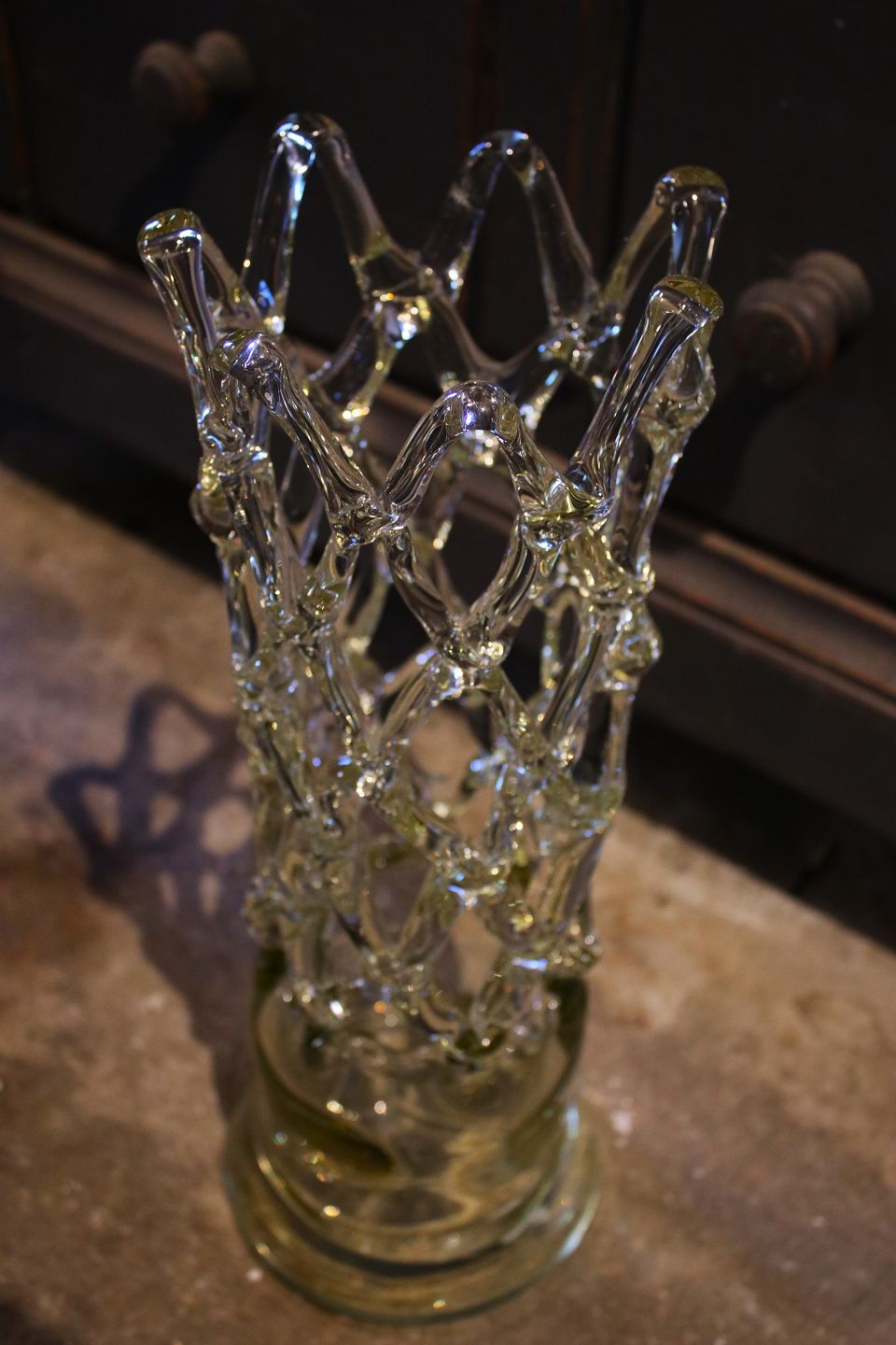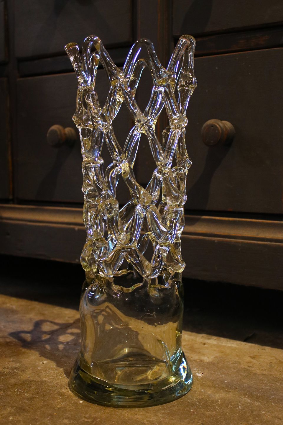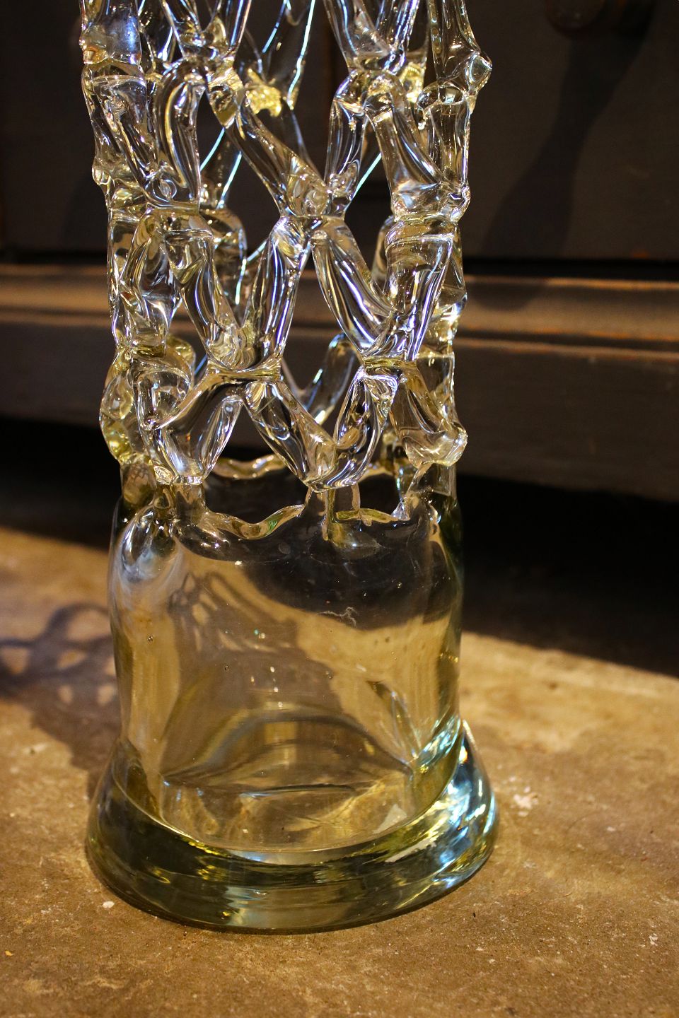 Fin gammel , dekorativ skulpturel mundblæst glasvase i sart grøn farve...