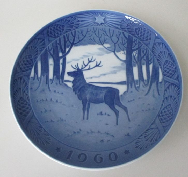 Royal Copenhagen, Weihnachtsteller 1960, Kopenhagen, Dänemark. Der Hirsch. Gestempelt. Durchmesser: 18,2 cm.Bestellnummer: 18364