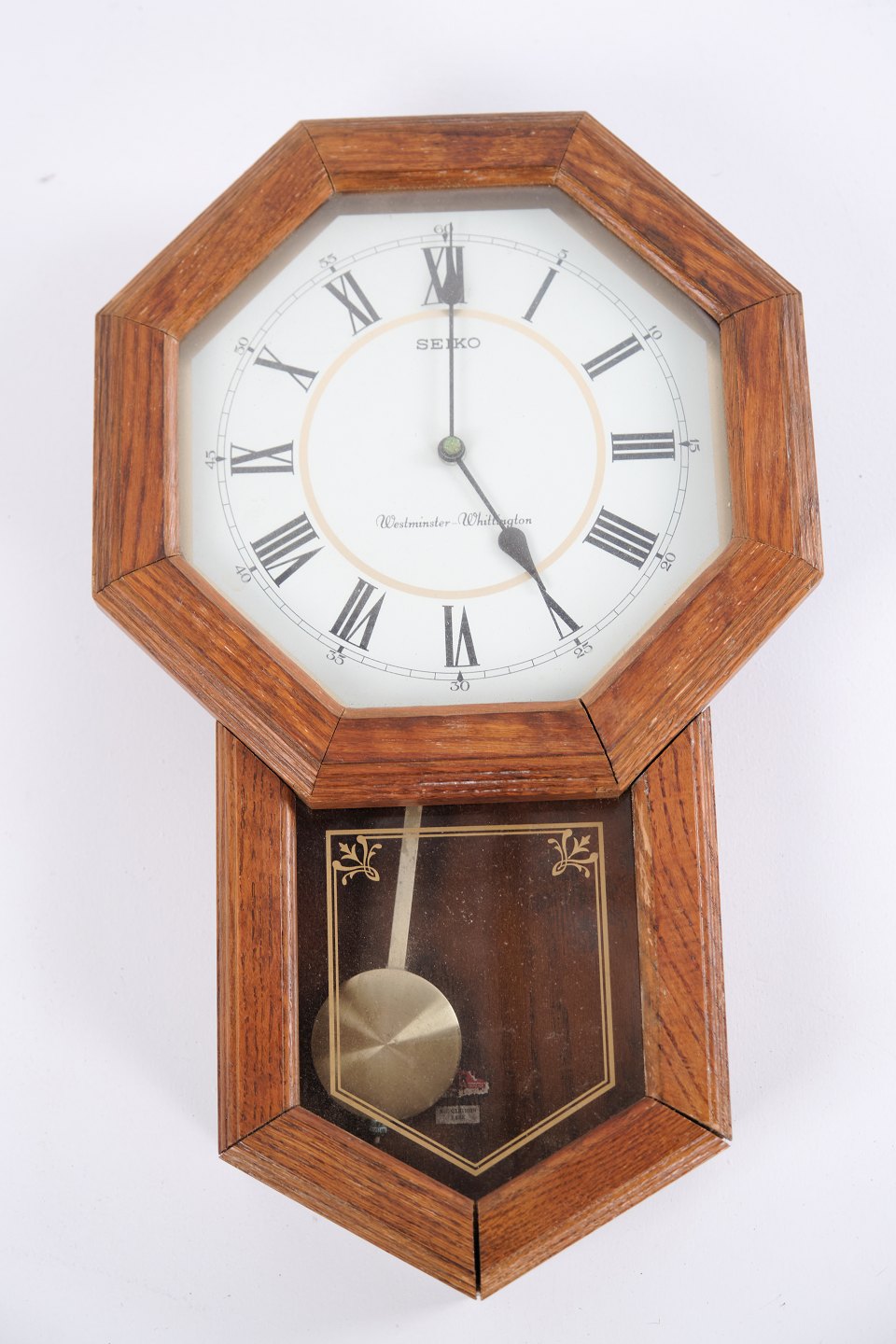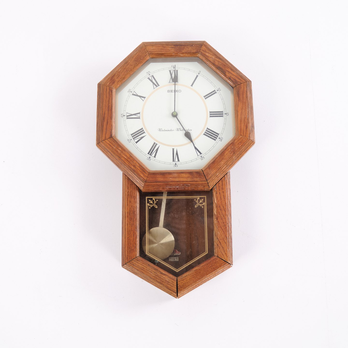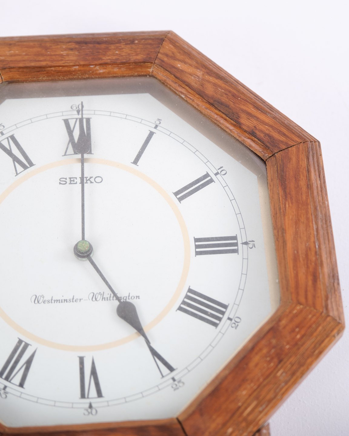 Wanduhr von Seiko mit Westminster- und Whittington-Gongmelodien. Aus Eichenholz gefertigt, mit klassischer Front und gut lesbarem Zifferblatt. Eine hochwertige Uhr mit präzisem Laufwerk und zeitlosem Ausdruck.— Hersteller: Seiko