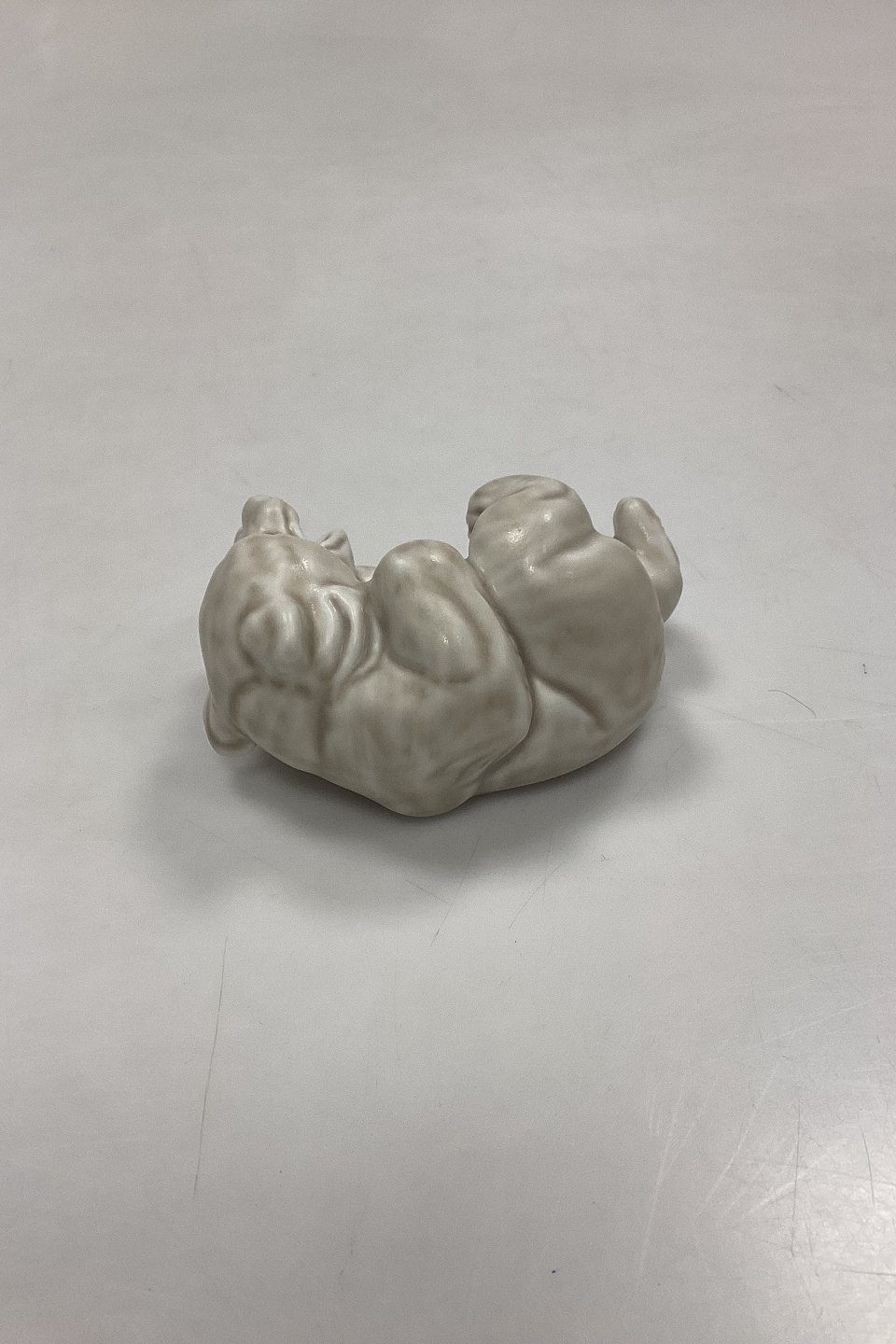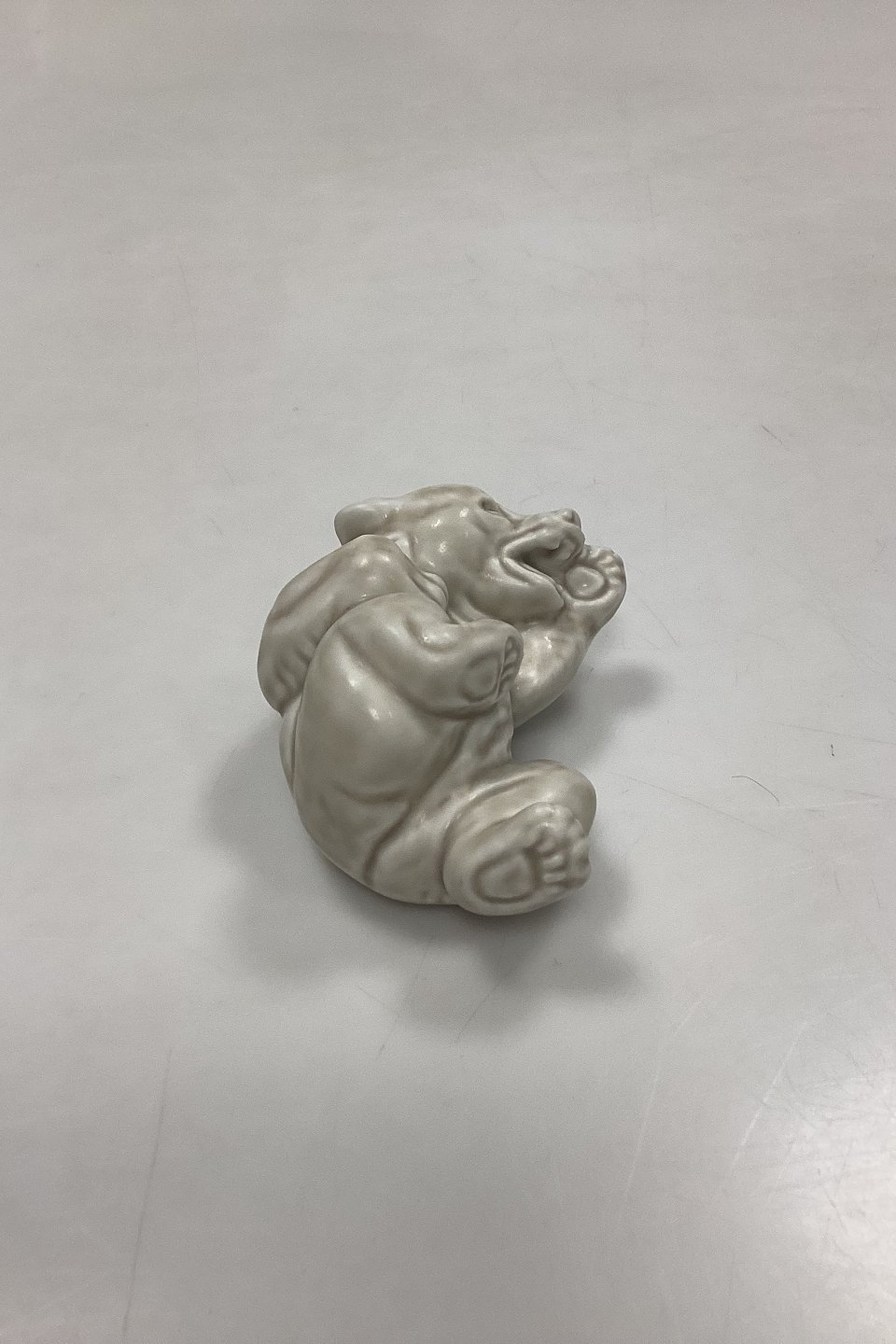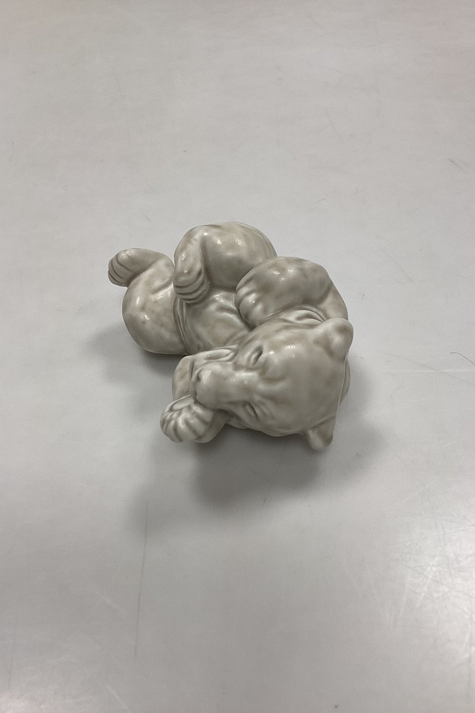 Royal Copenhagen Stentøjsfigur Hvid Bjørneunge No. 21432. Designet af Knud Kyhn. Mat glasur i hvidbeige nuancer.Måler 4 x 9 cm / 1,57 in. x 3,54 in.