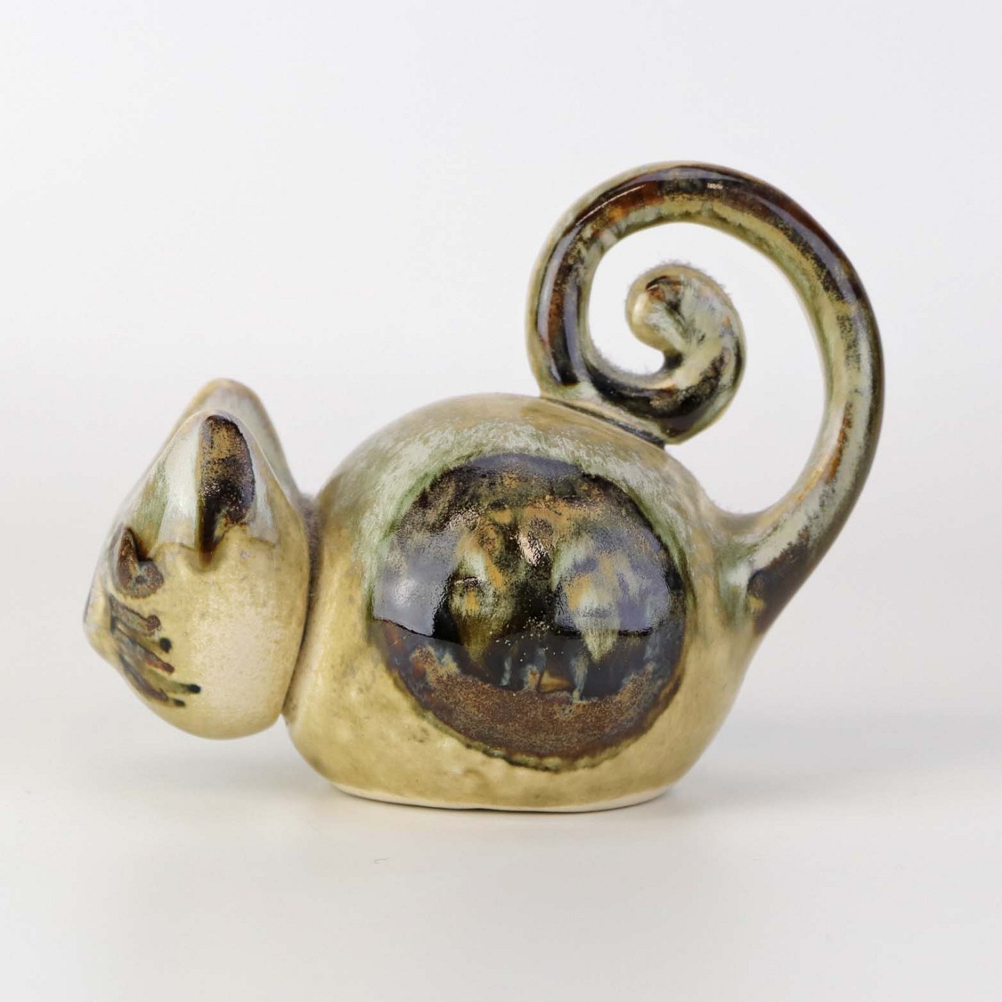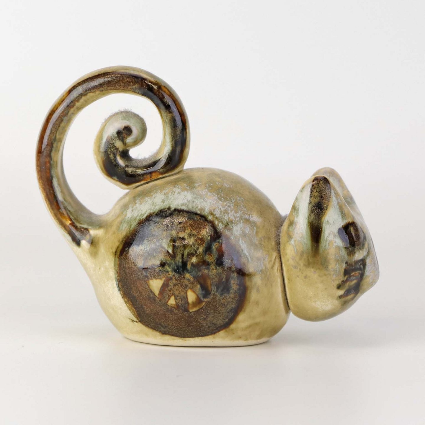 Figur i glaseret keramik med motiv af en katProducent Søholm keramik