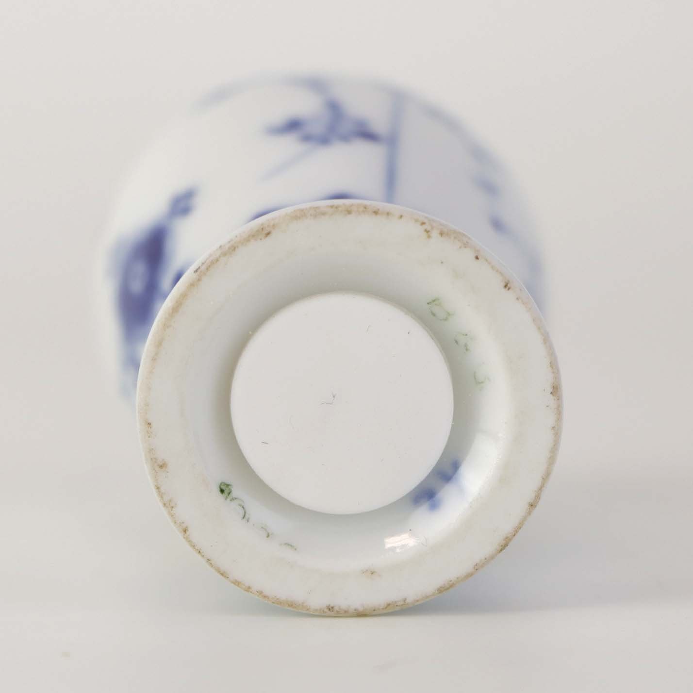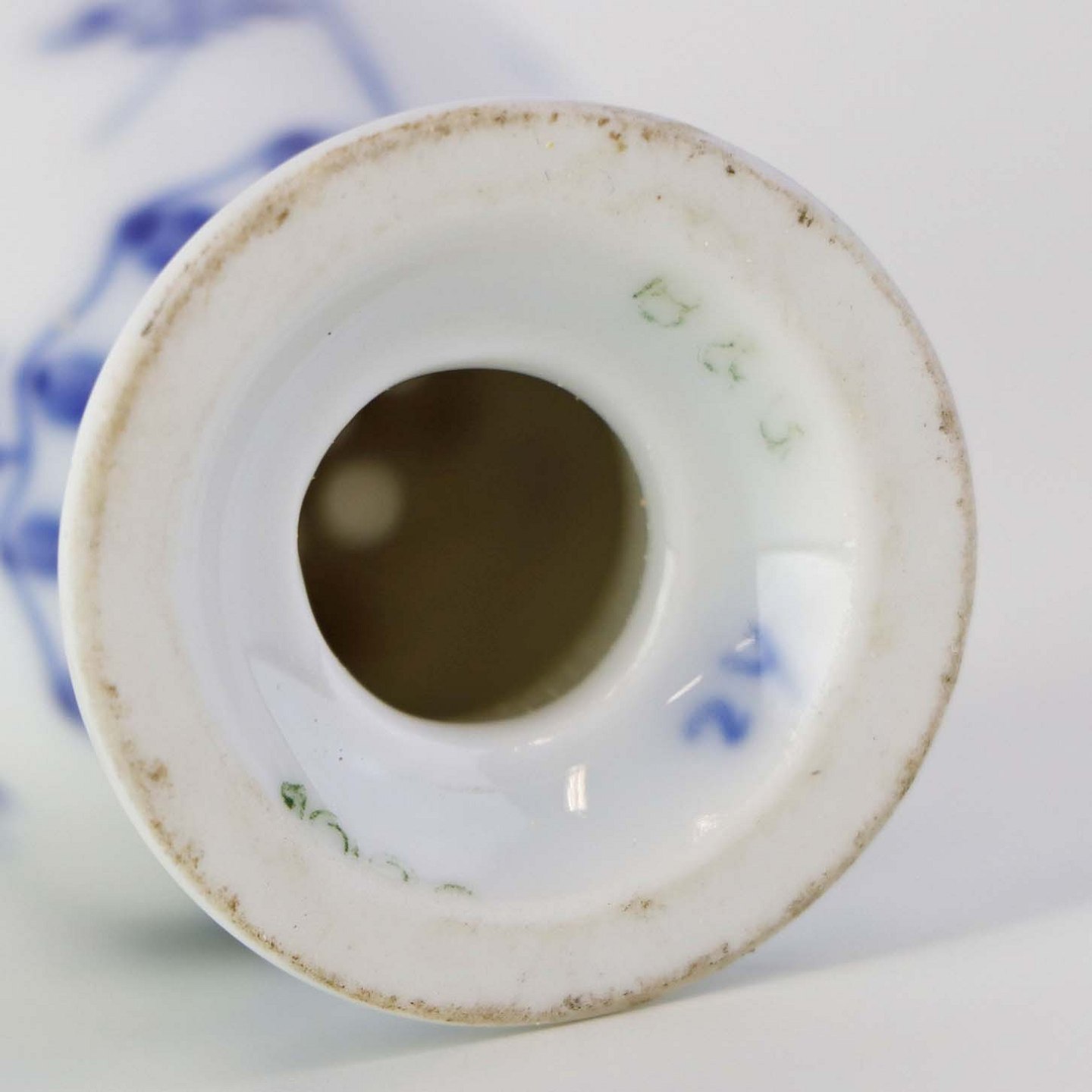 Service i hvid porcelæn med skelform og blå dekoration af blomsterranker