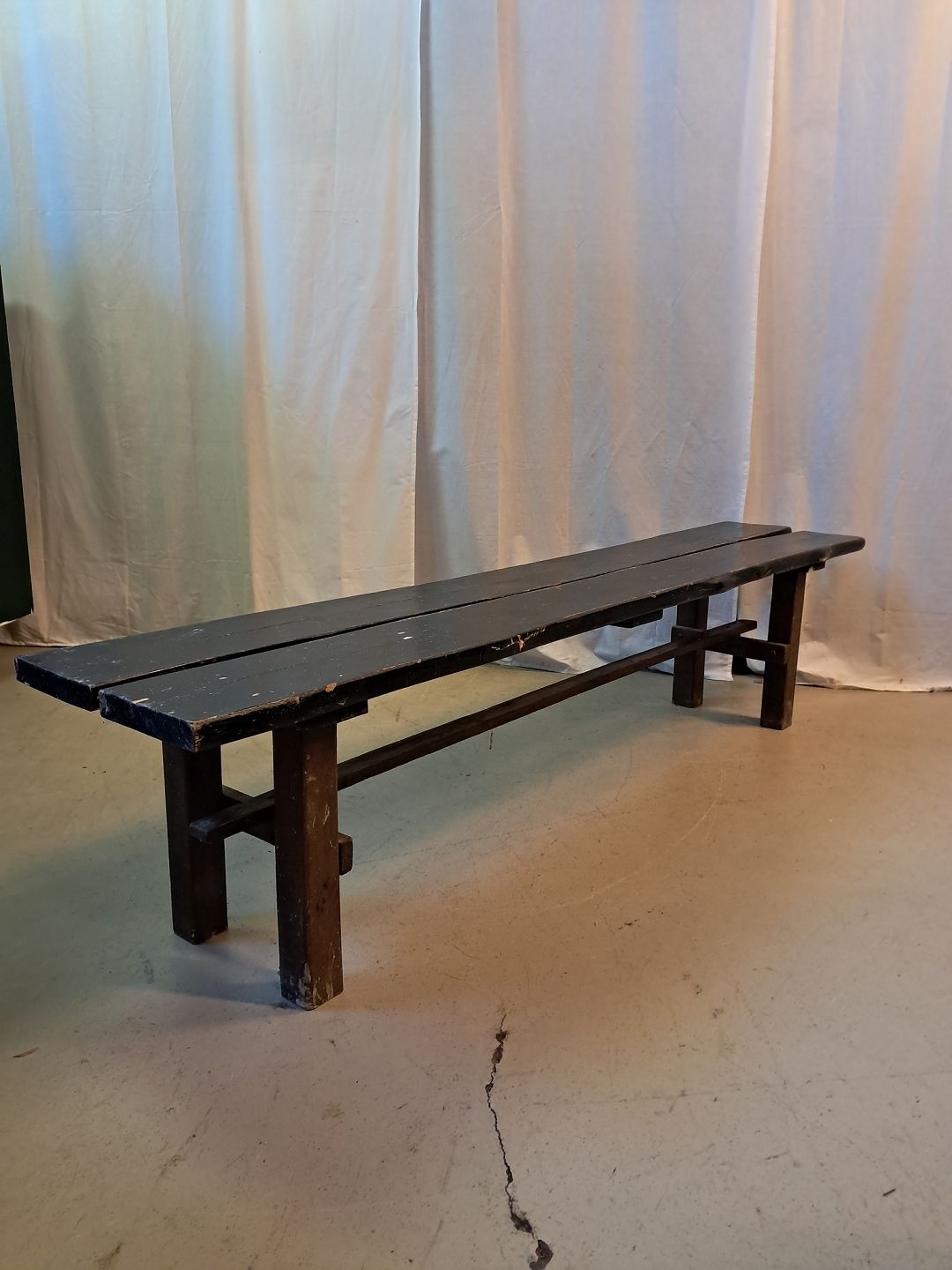 Malet bænk i massivt Fyrre og egetræ, fra 1950erne.Den har brugsspor.