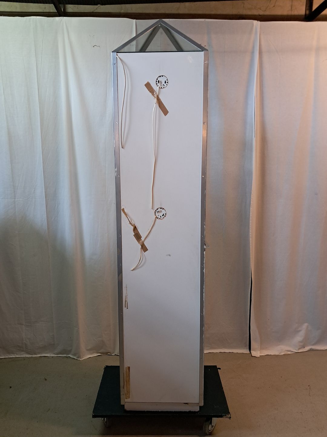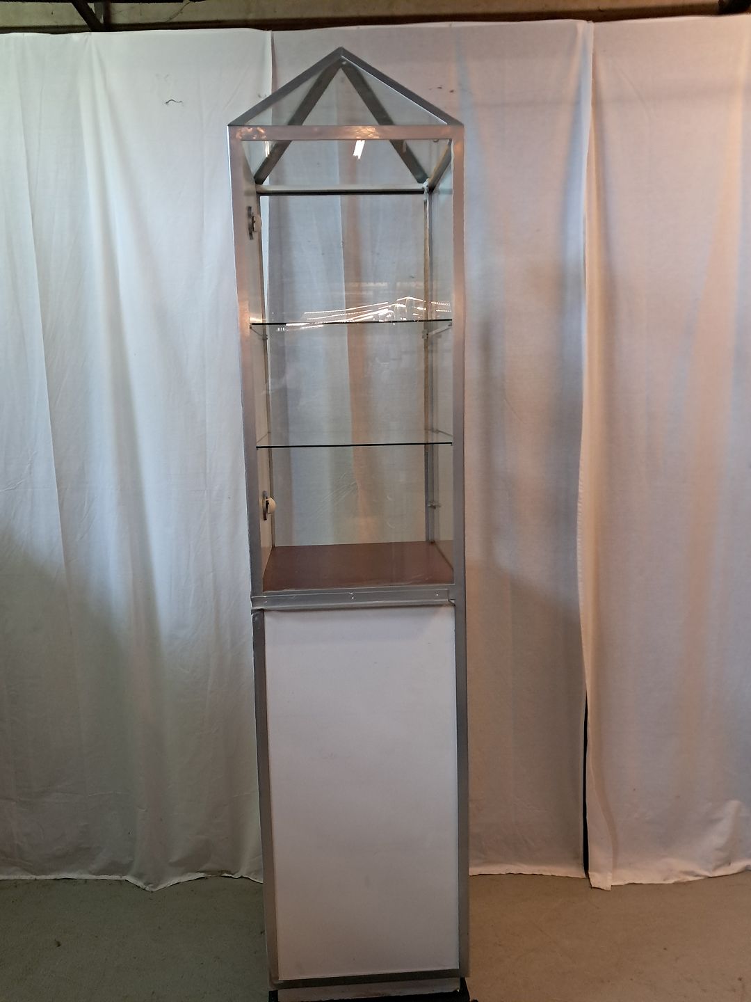 Skab med glasoverdel, fra 1990erne.Det har brugsspor og der medfølger 1 nøgle.