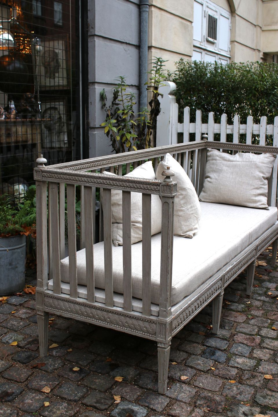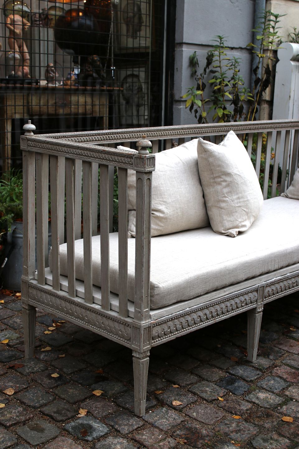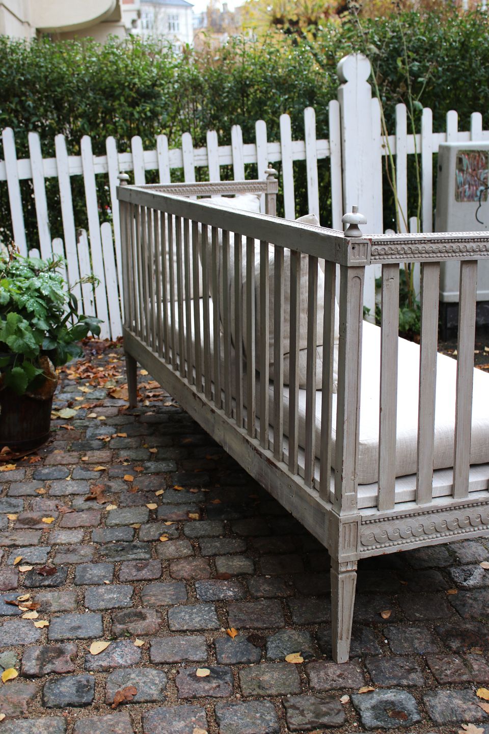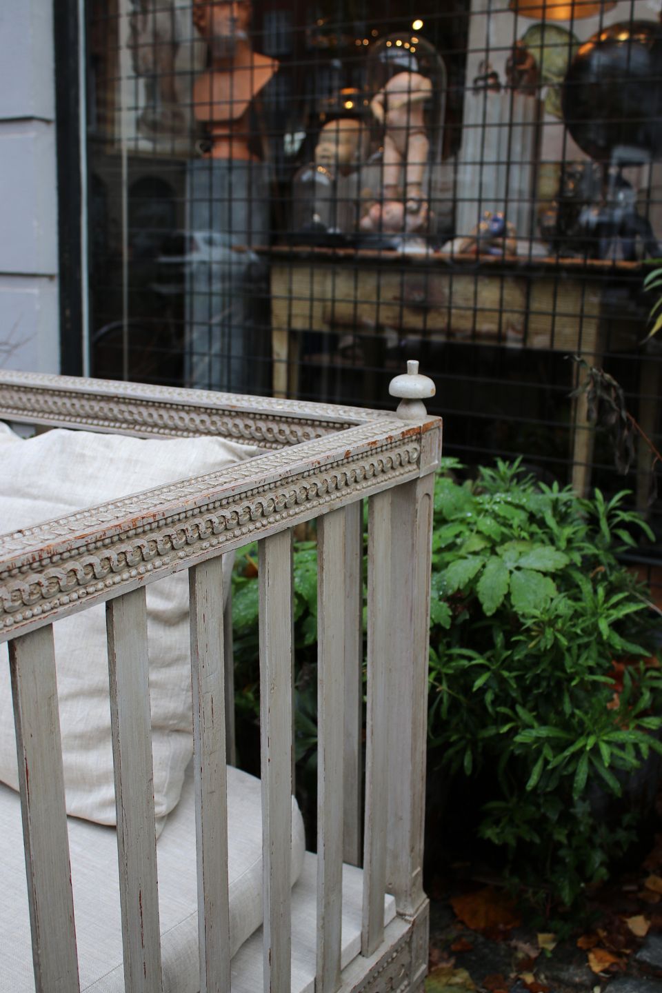 Gustaviansk svensk 1800 tals sofabænk i original grå farve med fin patina...