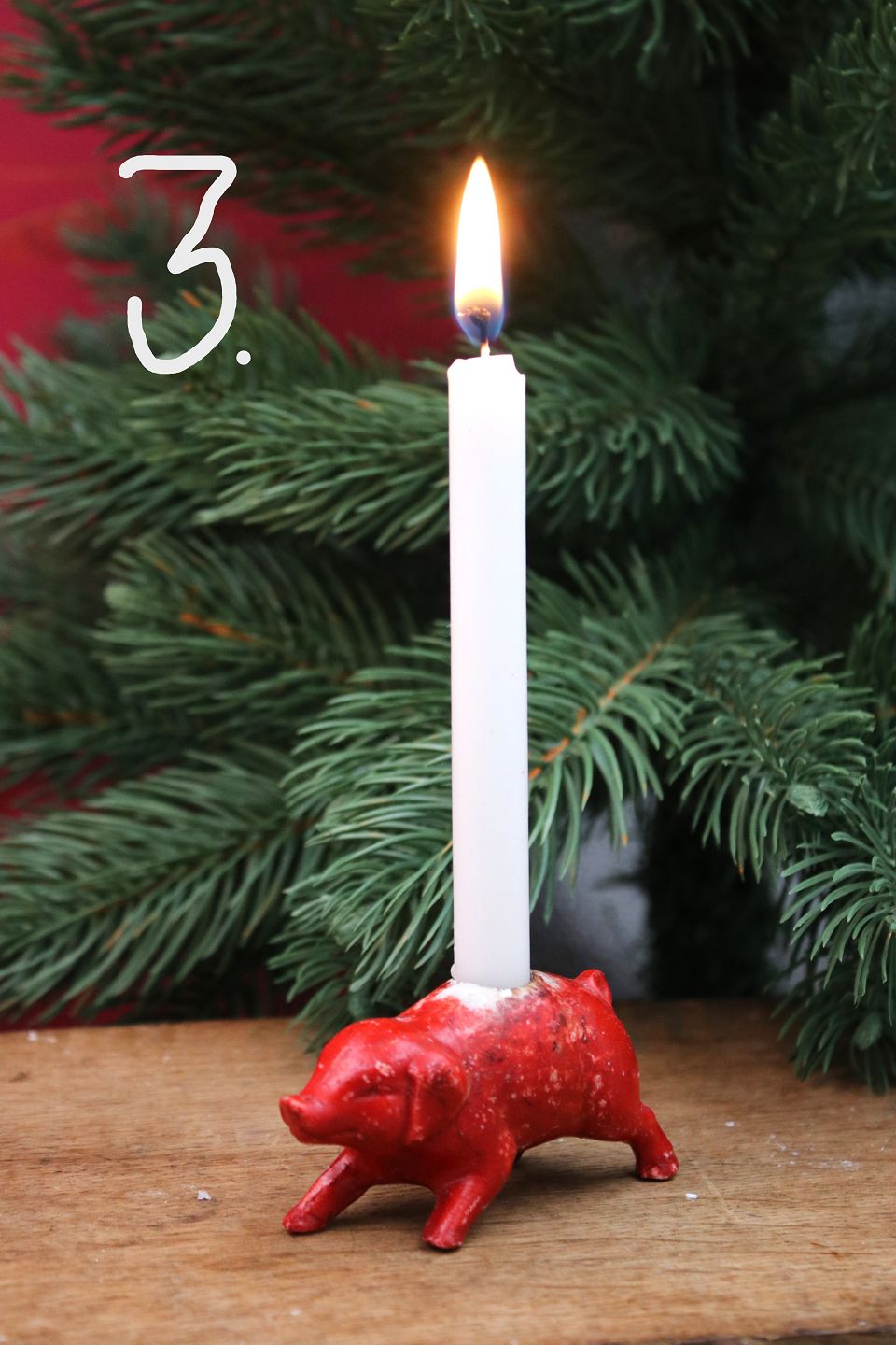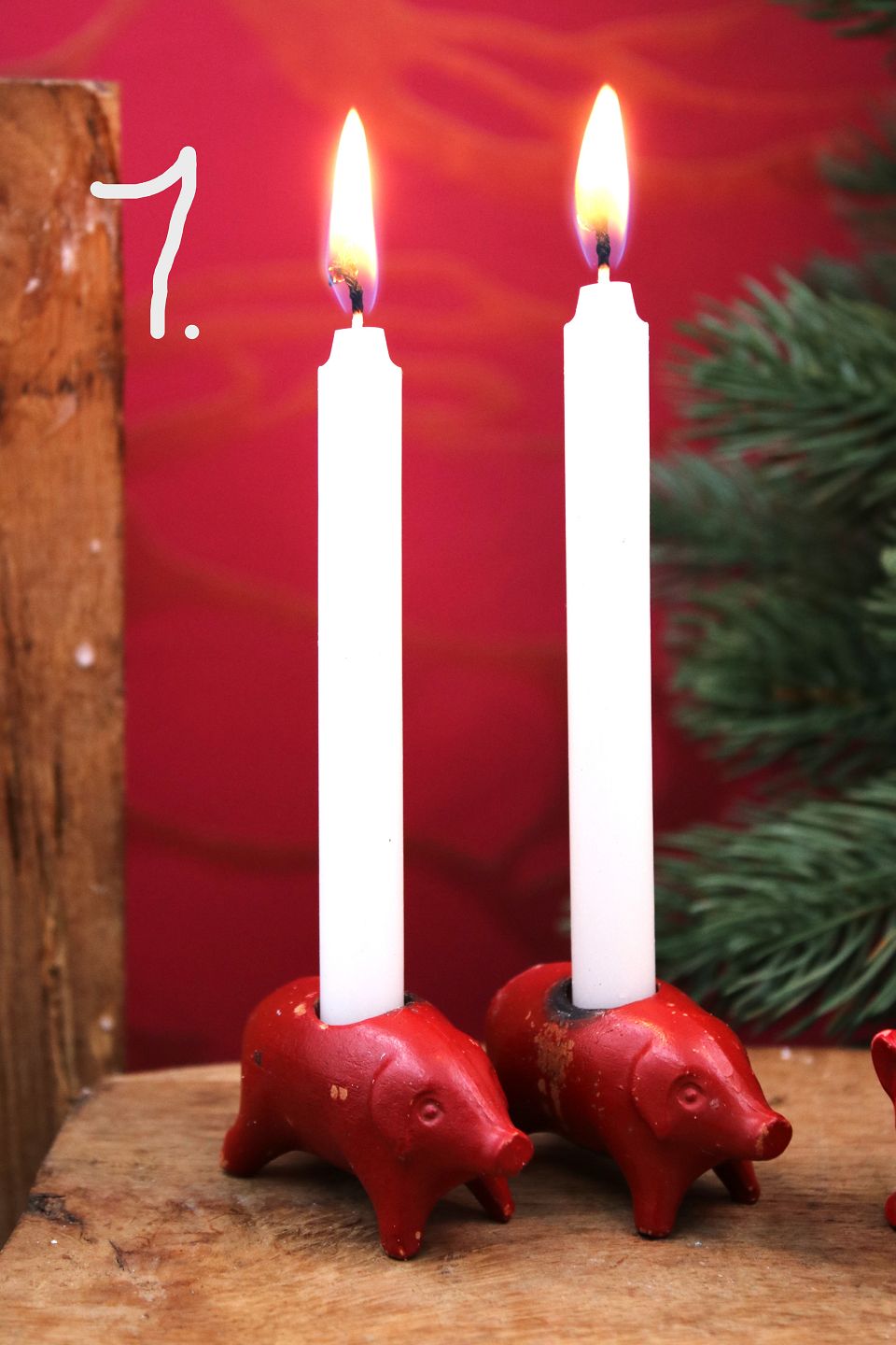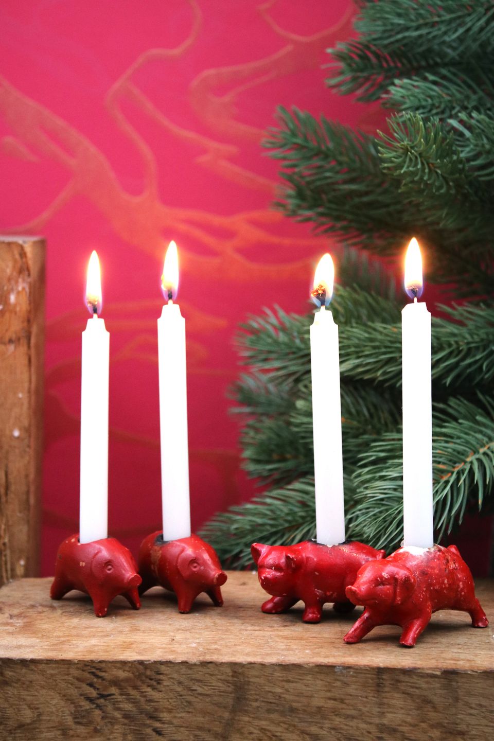 Gamle julegrise i bemalet porcelæn med plads til et lille julelys...