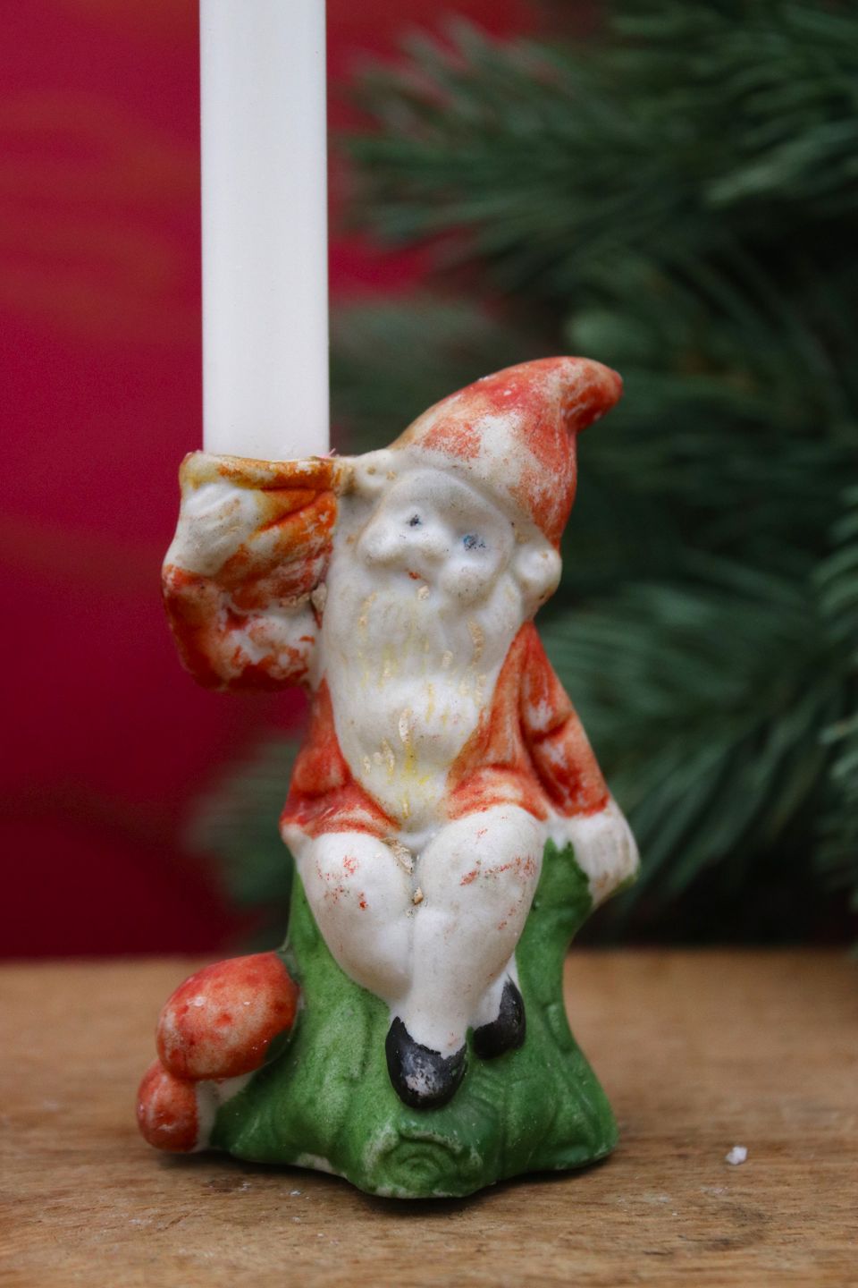Lille biskuit nisse med fin patina som holder et lille julelys.Højde: 7,5cm.