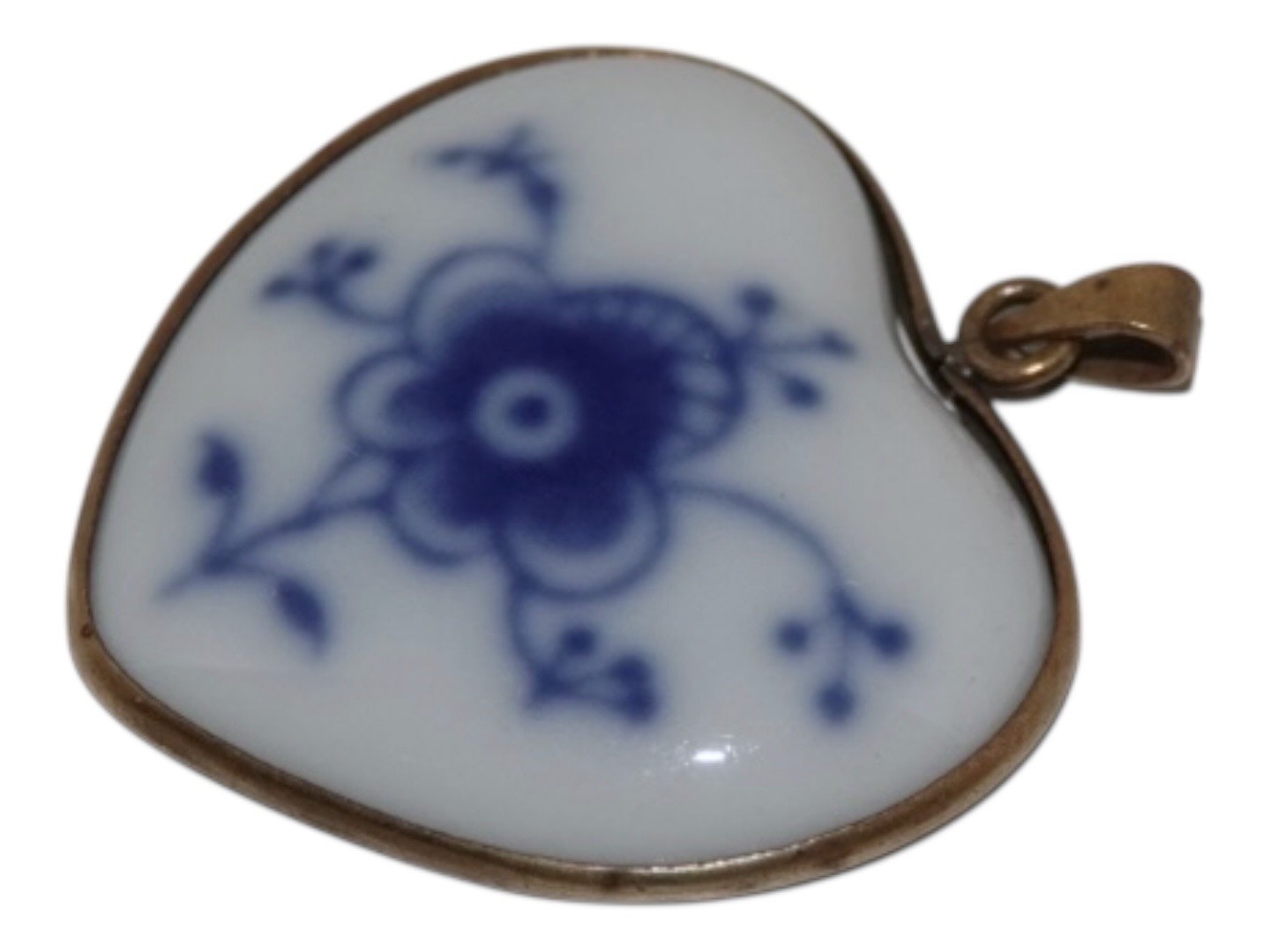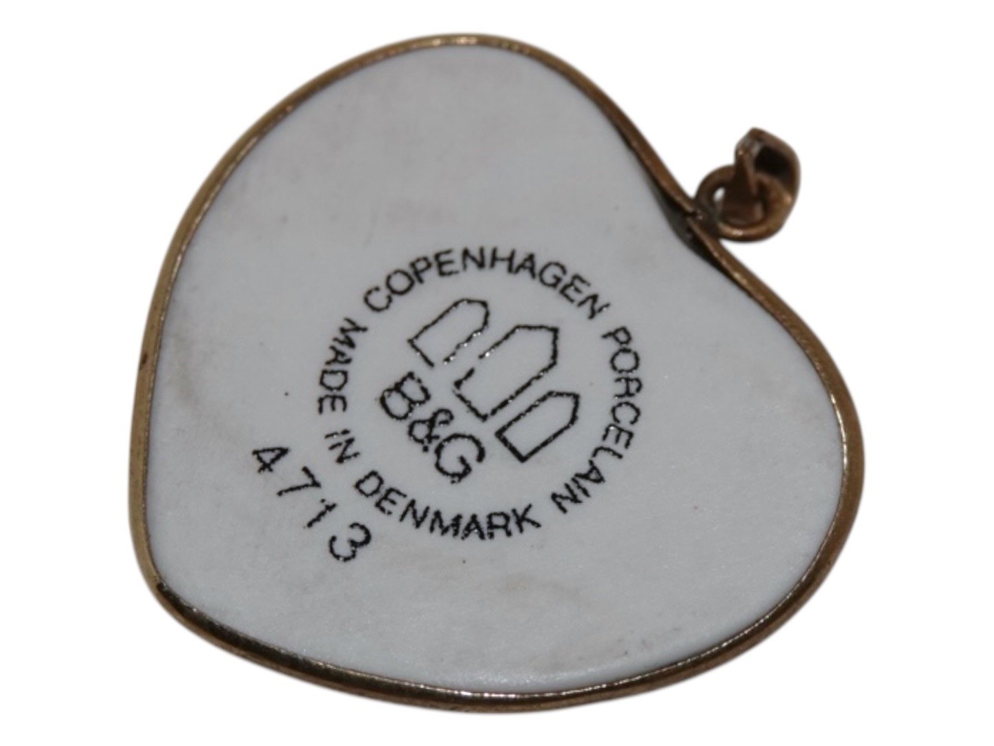 Bing & Grøndahl Musselmalet / Blåmalet, hjerte vedhæng med messingkant.Dekorationsnummer 4713.