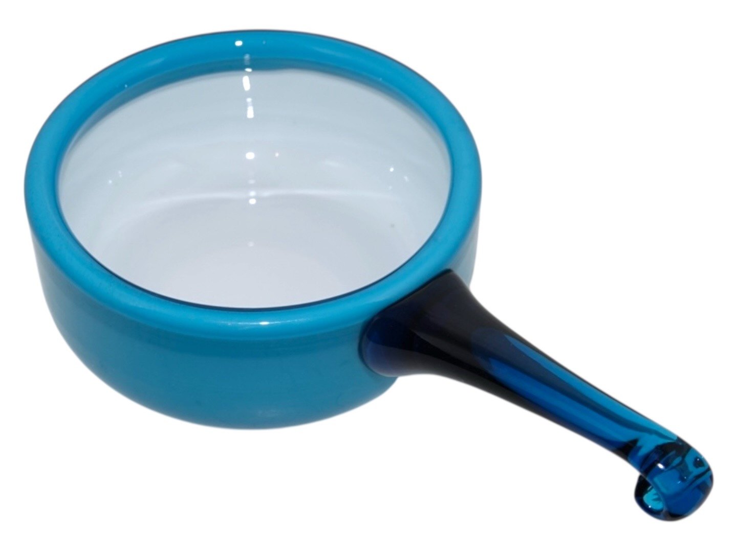 Holmegaard Palet, small blue bowl with handle still with remains of the original Holmegaard label.Designet by Michael Bang in 1973.