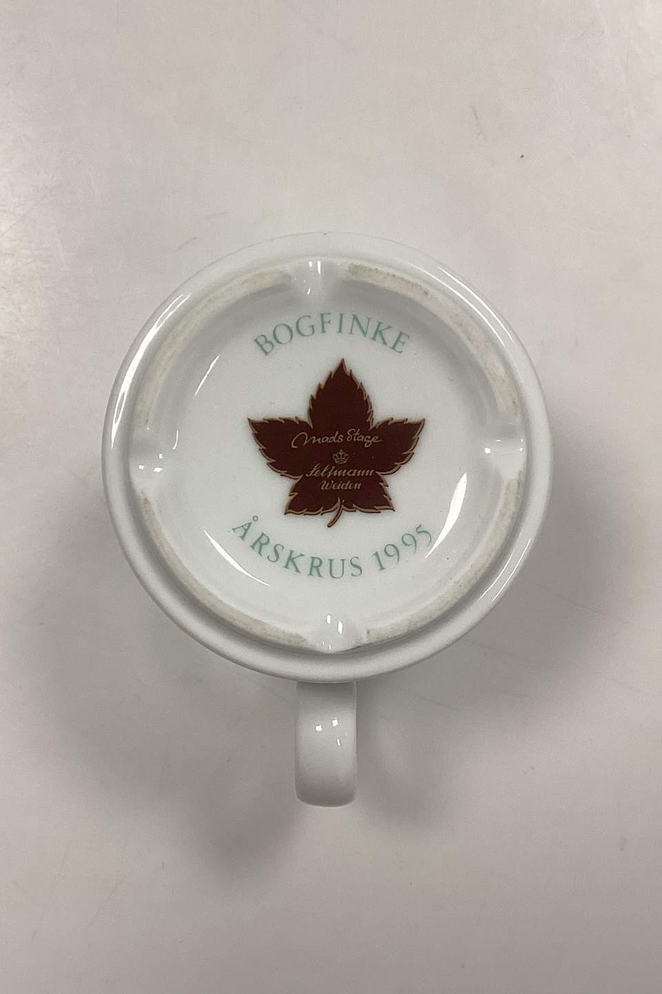 Mads Stage Årskrus - Bogfinke 1995. Producent: Seltmann Weiden for Imerco. Måler 7,5 cm x 8,3 cm / 2,95 in. x 3,26 in.