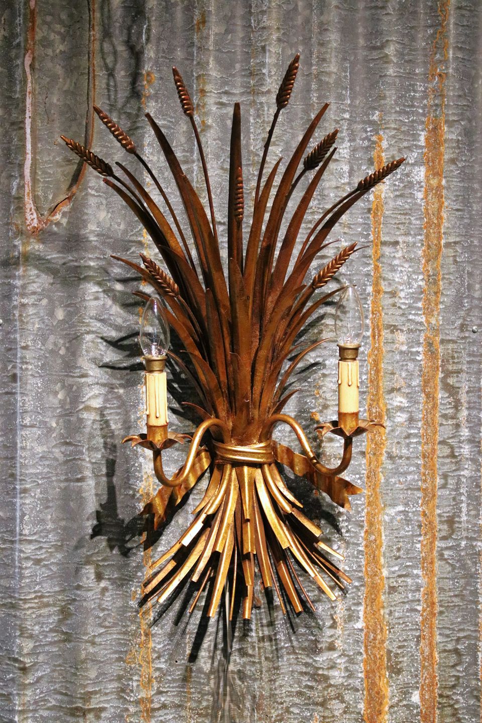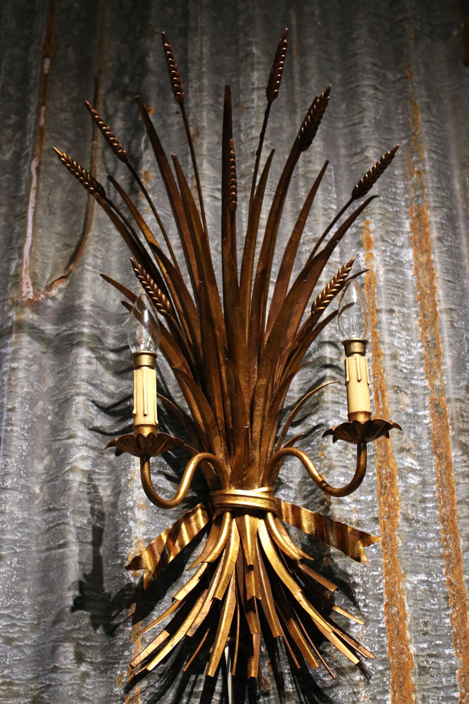 Stor forgyldt Hans Kögl metal væglampe (Buket af kornneg) i Hollywood Regency stil fra 60érne...
