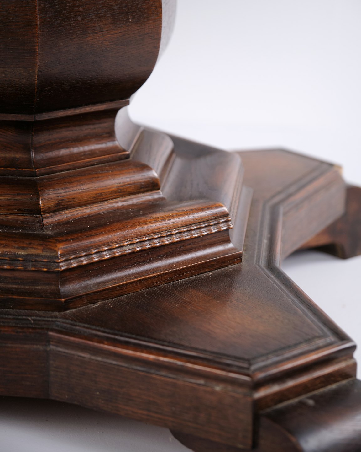 Sideboard or dining table in Empire style from the 1820s, crafted in mahogany as a classic pedestal table with a rectangular top. A decorative and functional piece with period-typical design, suitable for both dining rooms and serving areas.— Period: 1820s