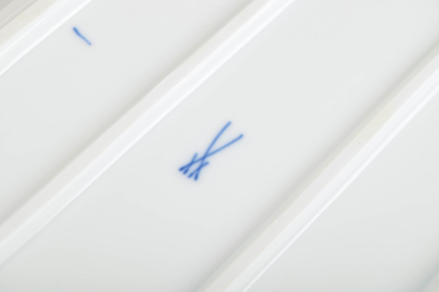 Stemplet med Meissens korslagte sværd, annulleret med to indridsede streger.