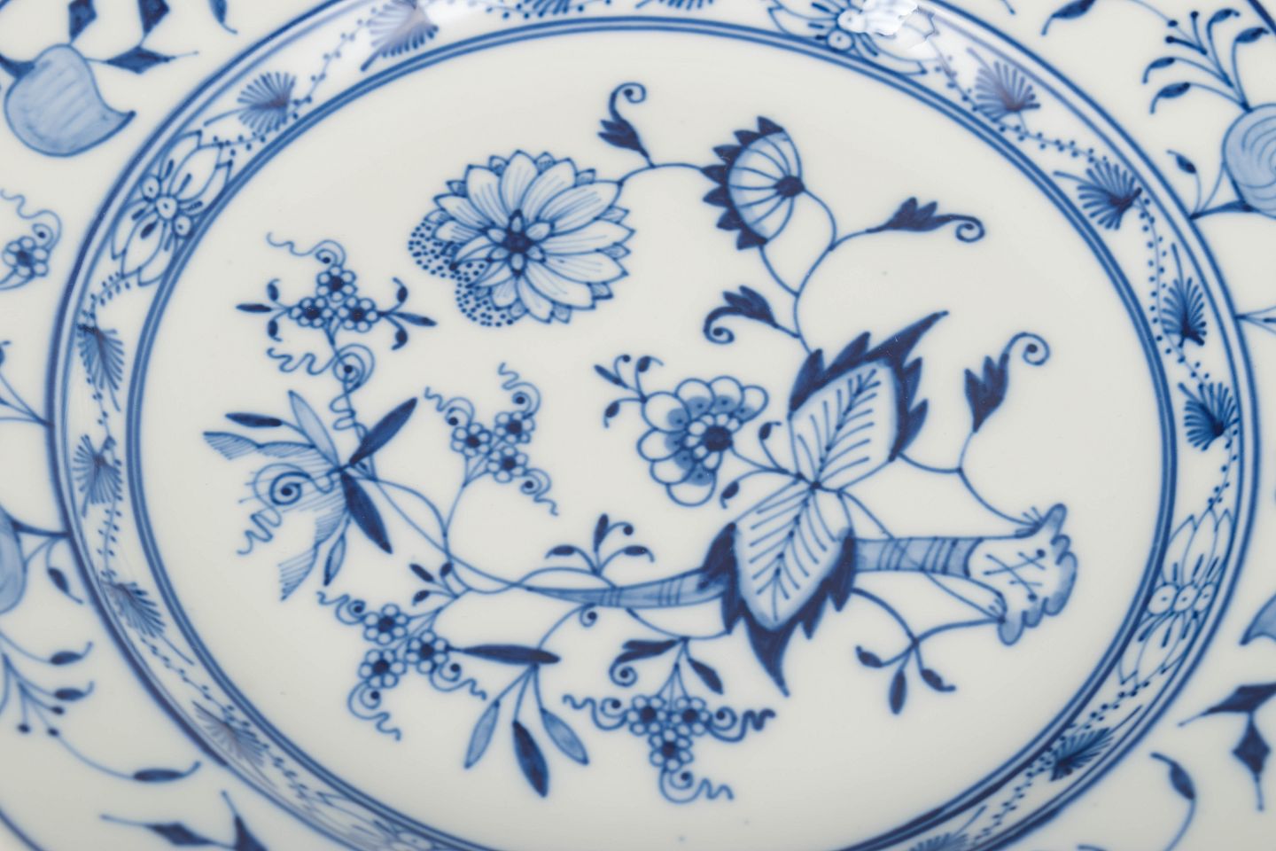 Meissens Zwiebelmuster blev introduceret i 1730’erne og er et af verdens mest kendte porcelænsdesigns. Dekorationen er håndmalet i koboltblå underglasur og har været i kontinuerlig produktion i snart 300 år. De tidlige 1900-tals eksemplarer er særligt værdsatte for deres håndværksmæssige kvalitet og skarpe maleri.