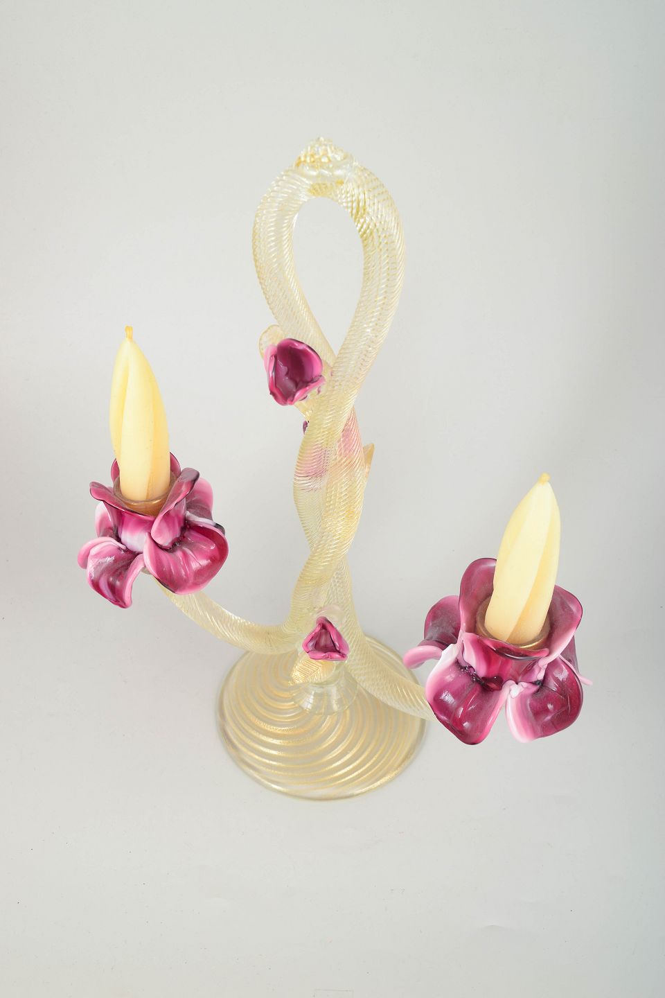 MuranoStor to-armet lysestage i art glass, 1960’erne.