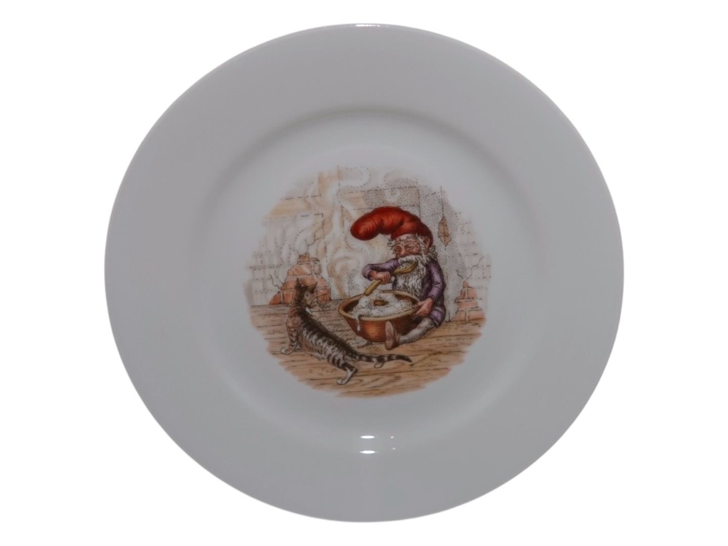 Royal Copenhagen julestel, Kagetallerken med julenisse og kat.Dekorationsnummer 617.