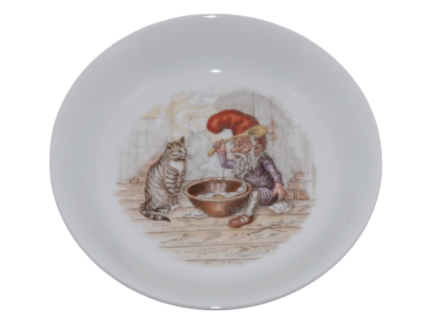 Royal Copenhagen julestel, asiet med julenisse og kat.1. sortering.