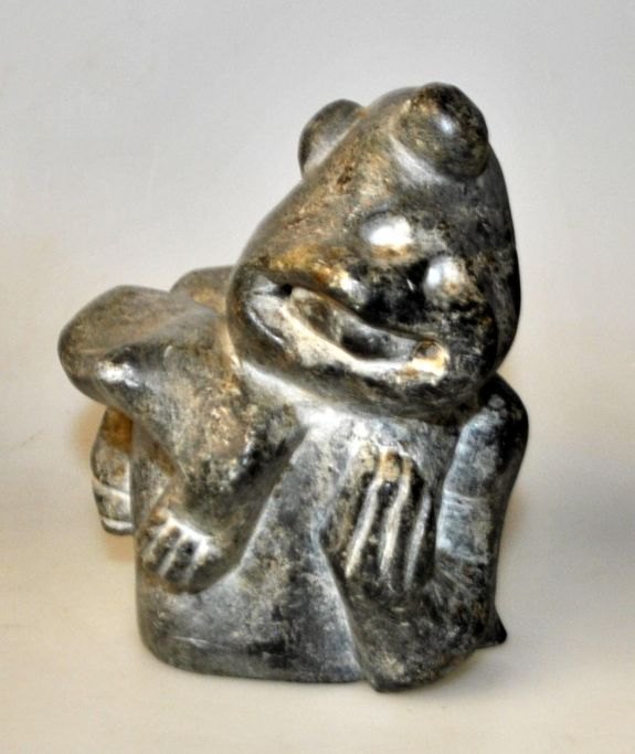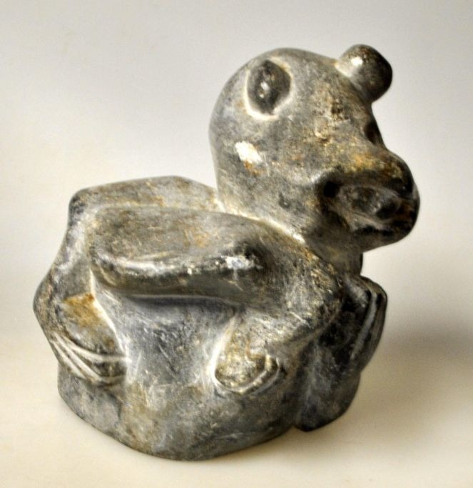 Grönländische Specksteinfigur. Mythisches Tier, 20. Jahrhundert. Höhe: 13 cm. Länge: 11,5 cm. Schwach signiert.Bestellnummer: 28610