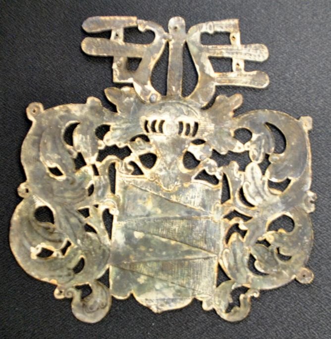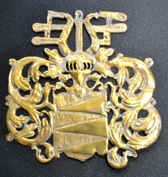 Messingschild mit Adelswappen, 17.-18. Jahrhundert. Dänemark. 21,4 x 20,5 cm.Bestellnummer: 28611