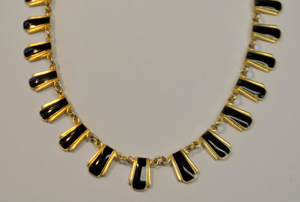 Volmer Bahner & Co, Kopenhagen (1962–1987): Halskette aus vergoldetem Sterlingsilber mit Emaille. Gestempelt. Länge: 39 cm.Bestellnummer: 28639