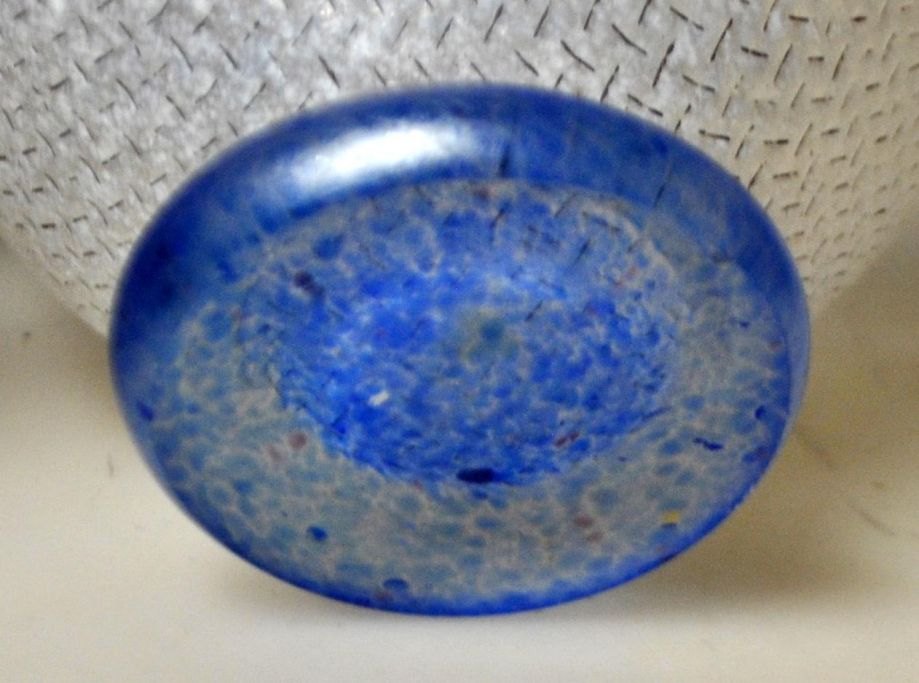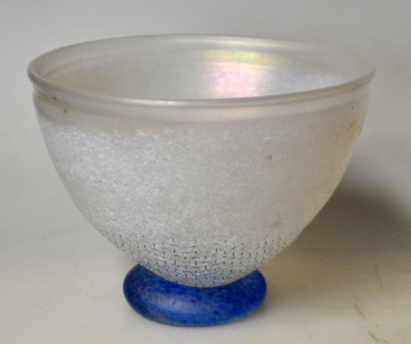 Kosta Boda Schüssel „Network“, Nr. 57863, Design: Bertil Vallien, 1978, Schweden. Mattiertes Glas mit Netzmuster auf blauem Fuß. Signiert. Höhe: 8,5 cm. Durchmesser: 11 cm.Bestellnummer: 28643