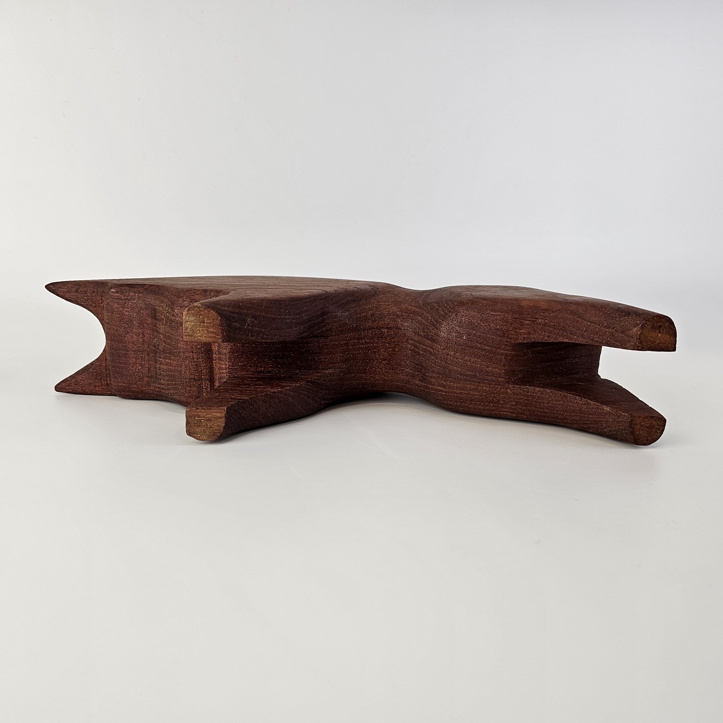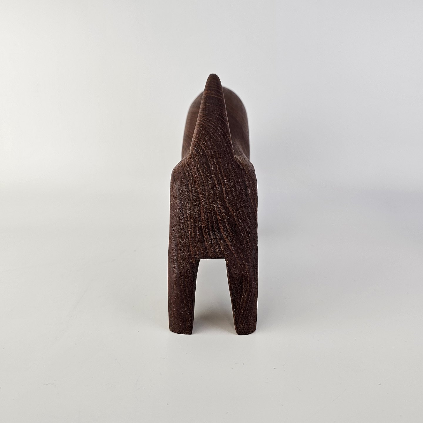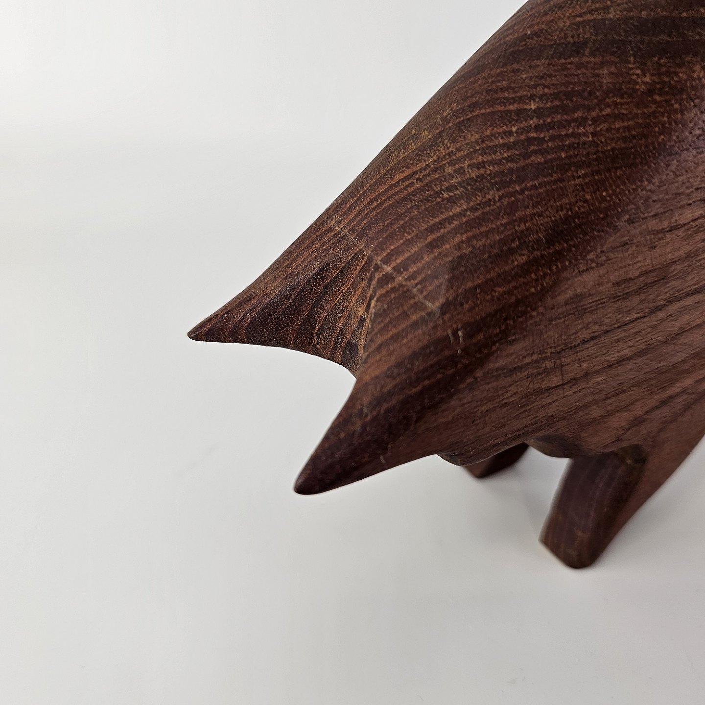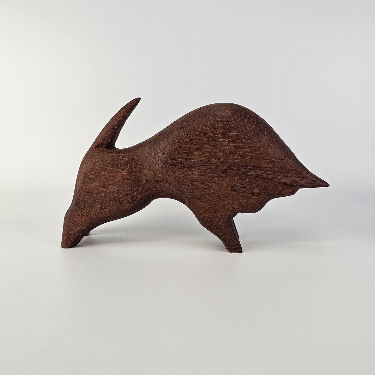 Figur i teak træ med motiv af en tyrProducent ukendt