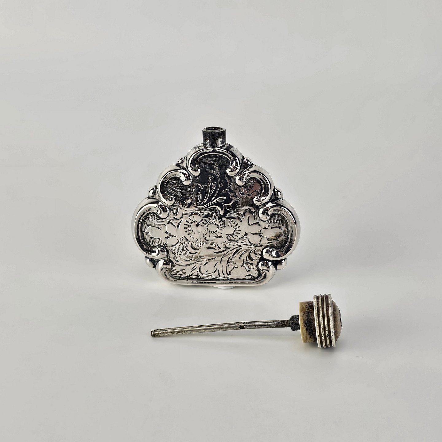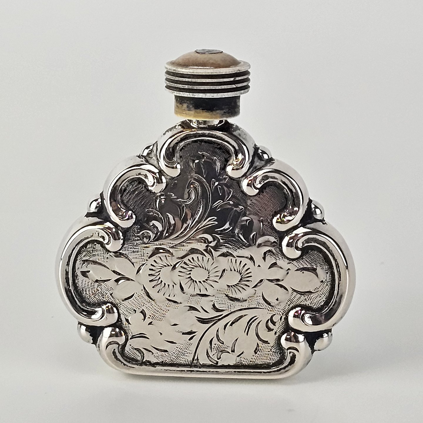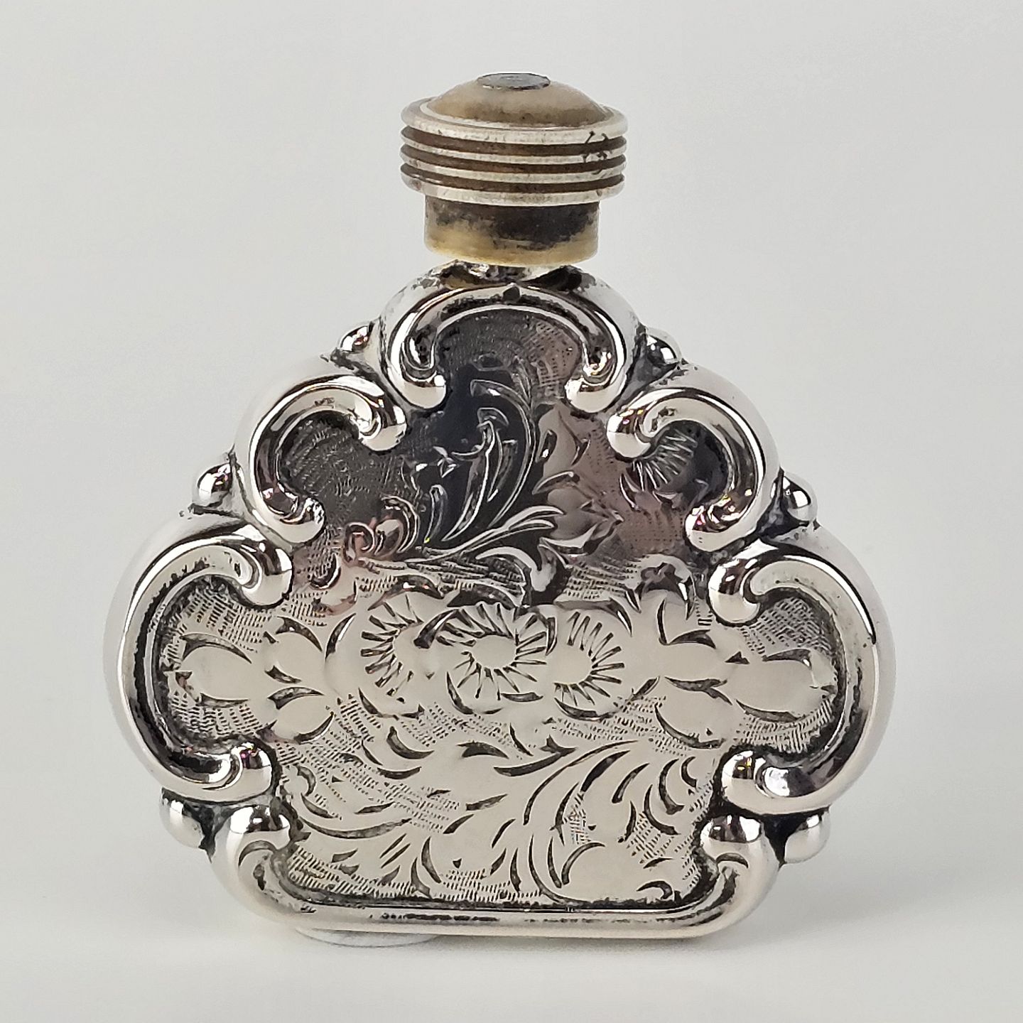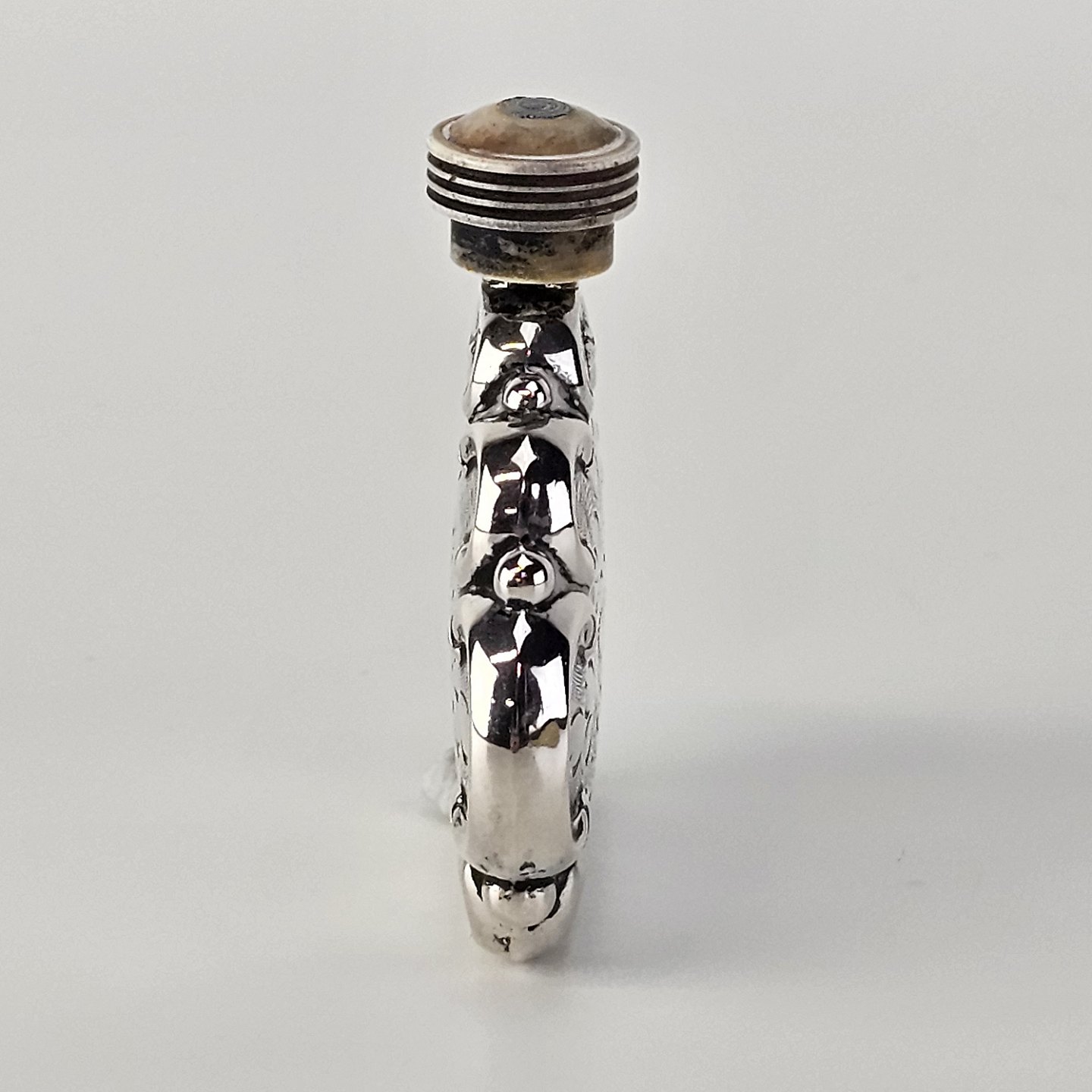 Parfumeflaske flakon i sølv 925S med blomstermotiv Stemplet 925 og PA