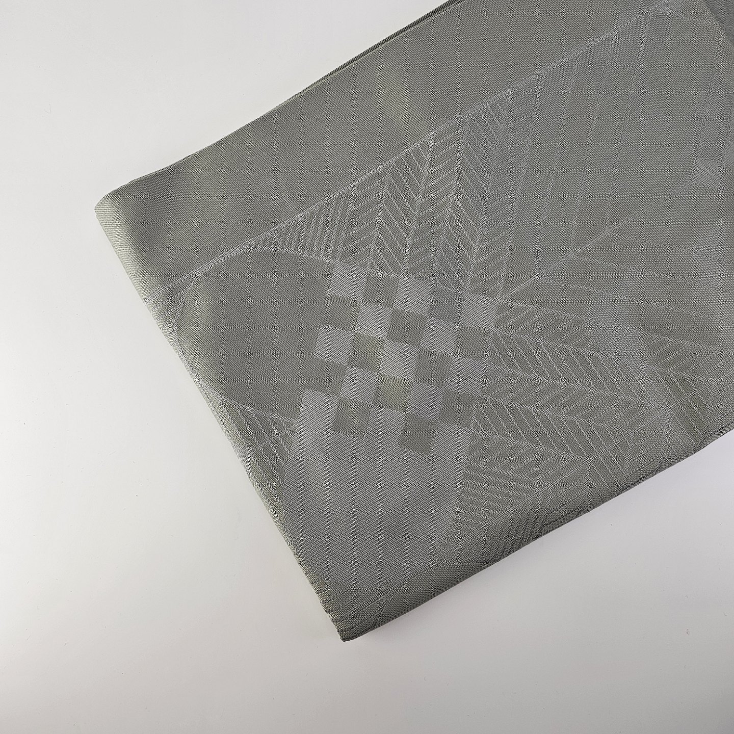 Grå vævet damask dug med motiv af julehjerterProducent Georg Jensen